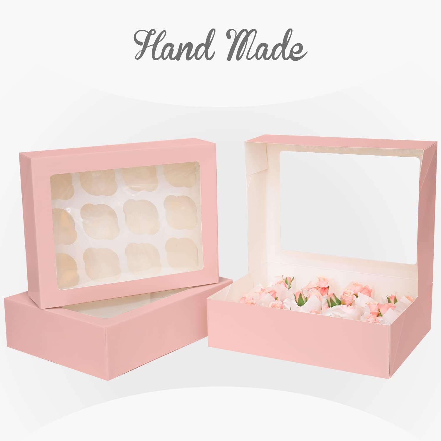 - (2)Easy Assembly and Storage: Just one step you can get a perfect cupcake boxes, and it’s big enough different size cupcakes