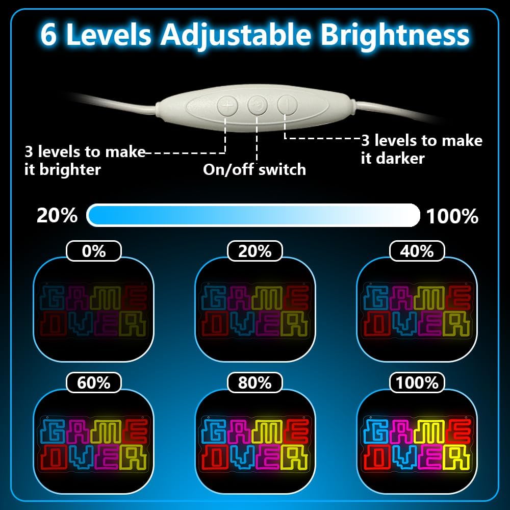 - 【Unique Design】This game over neon sign is a homage to every gamer's bittersweet finale. Boasting a one-of-a-kind font design that mimics the pixelated aesthetic of retro arcade games that evoke the energy of intense gaming battles.It captures the essence of gaming culture, celebrating both the defeats and victories that make every virtual adventure unforgettable.