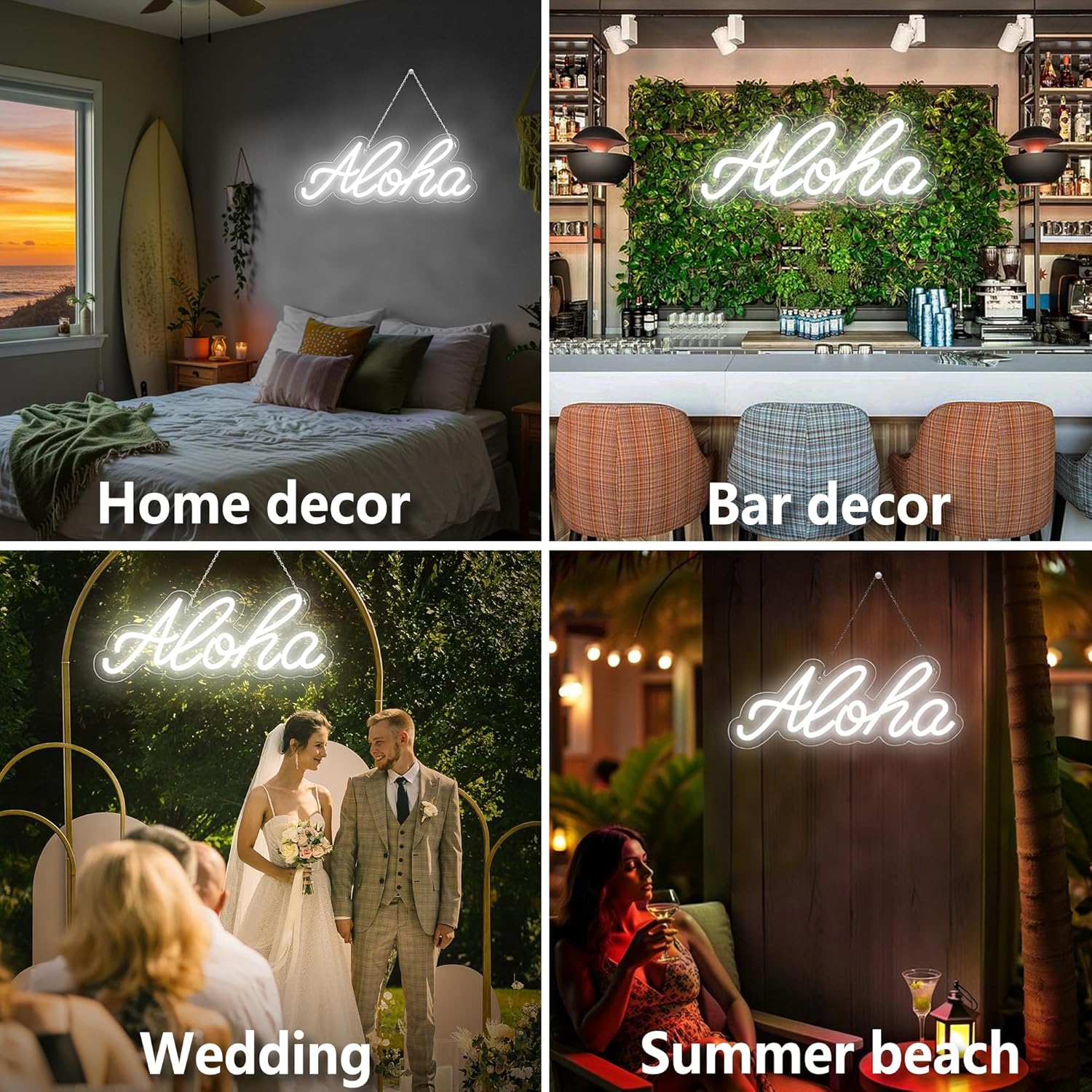 - 【Neon Sign for Wall Decor】Bring a taste of the tropical paradise home with this stunning Aloha Neon Sign! This white Aloha neon sign will add a warm and inviting glow to any room in your home or office, evoking a sense of relaxation and tranquility.