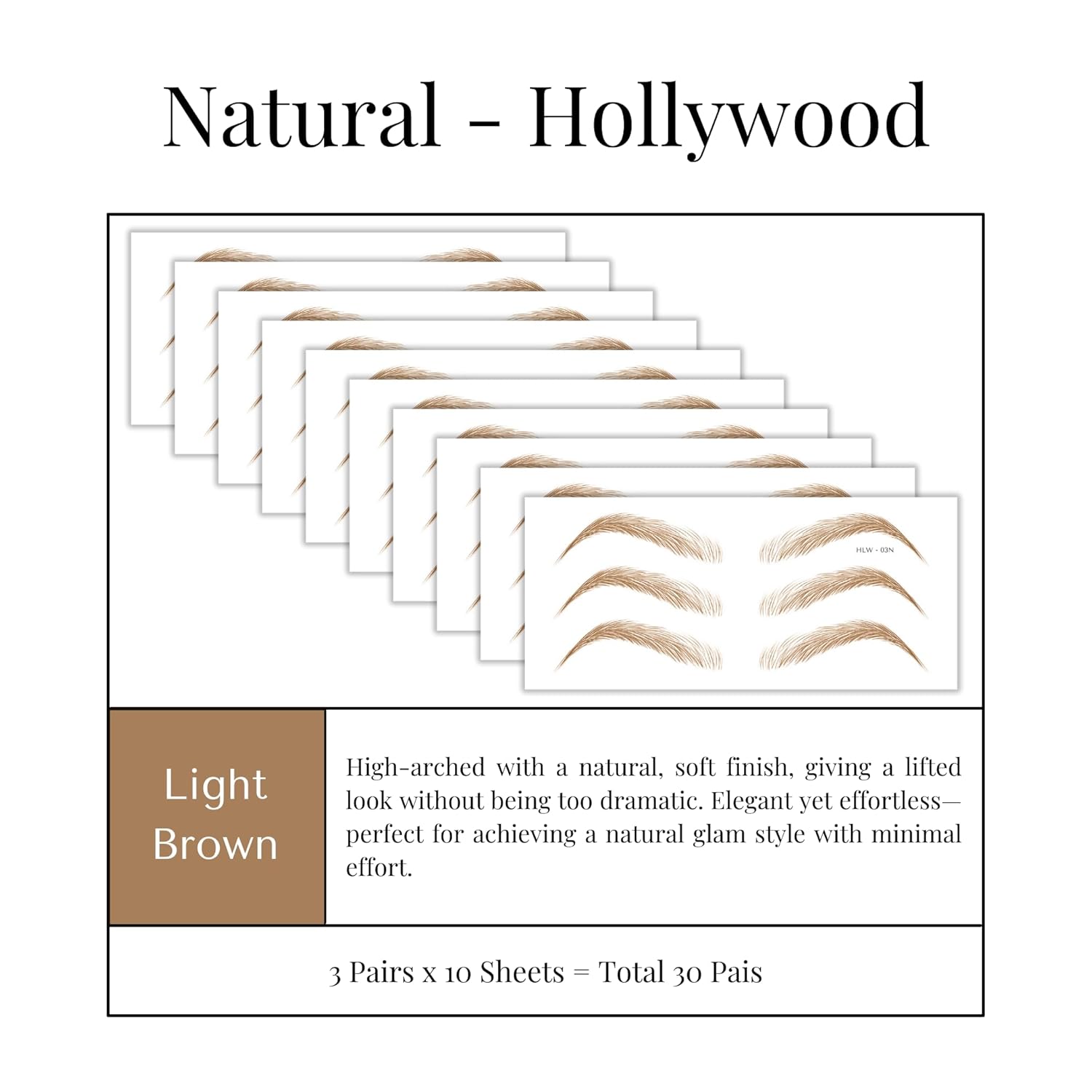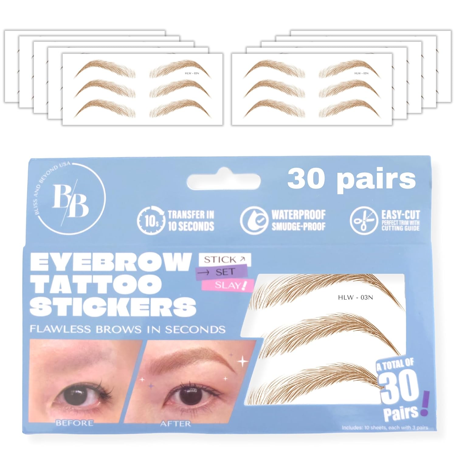 Bliss and Beyond USA Eyebrow Tattoo Stickers Waterproof – 30-Pair Deluxe Box | Realistic Hair-Like Temporary Brows for Alopecia, Cancer, and Hair Loss (Light Brown, Natural Hollywood)