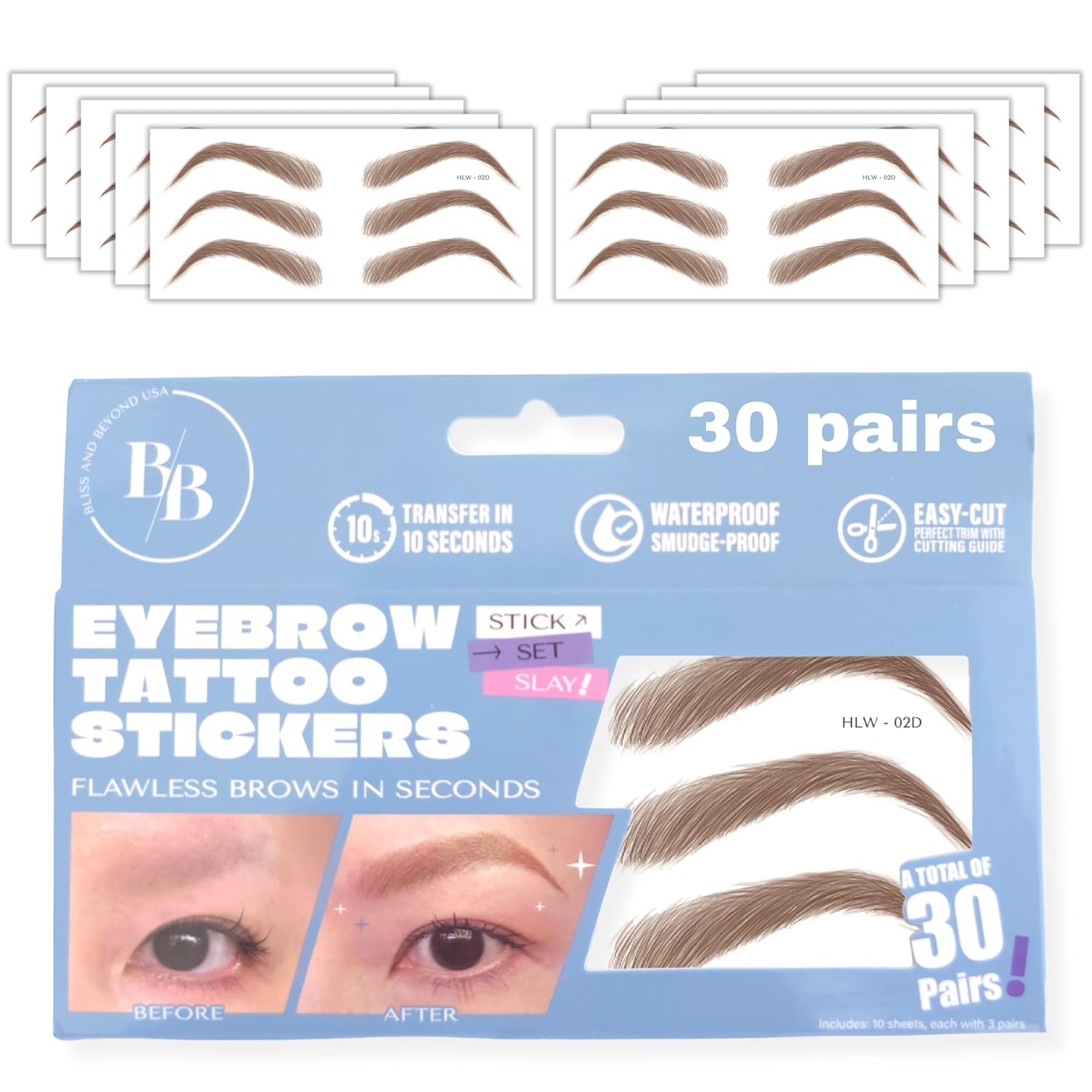 - Trim Guide on Back: Each sticker has a printed guideline on the back to help you cut evenly and match your brow shape.