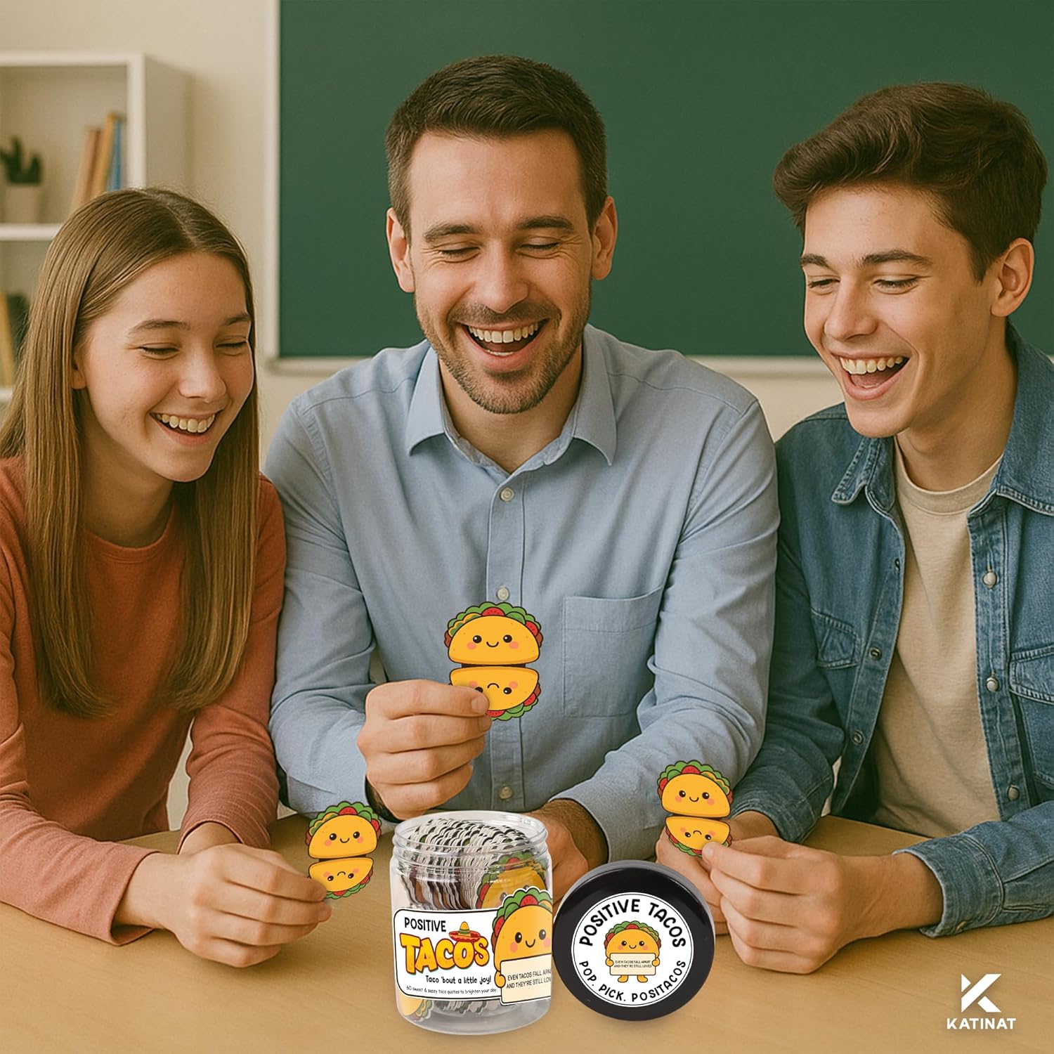 Positive Taco Jar โ 60 Funny Emotional Support Taco, Back to School Gift for Students, Teachers, White Elephant Gifts For Women, Men, Corworker, Mental Health Gift, Birthday Gifts for Women
