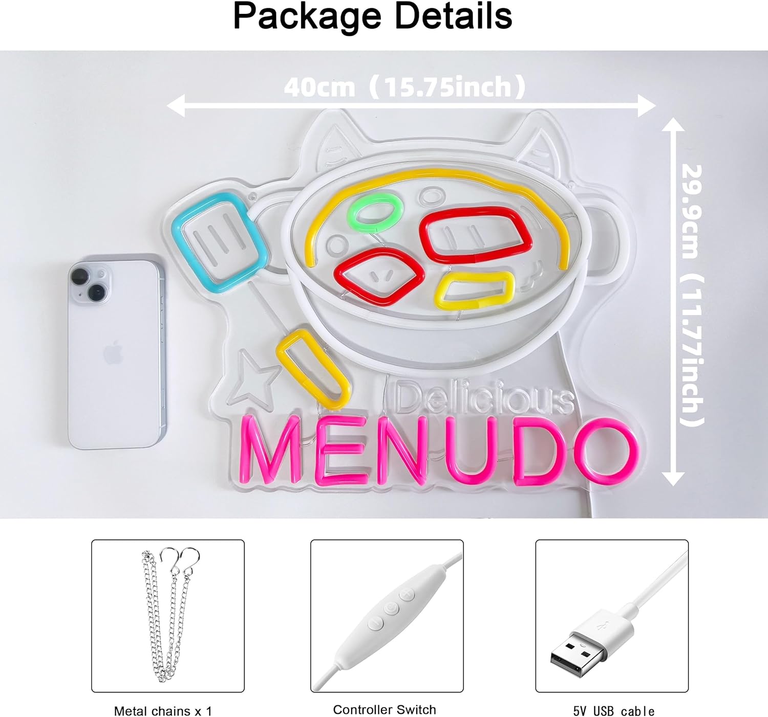 CNBEYOUNG Menudo Neon Sign, Neon Lights Hanging Wall Art Decoration for Mexican Restaurant Shop Bar Cafe Kitchen Party Home Decor, USB Powered Ultra Bright Dimmable,15.43x 12.2inches