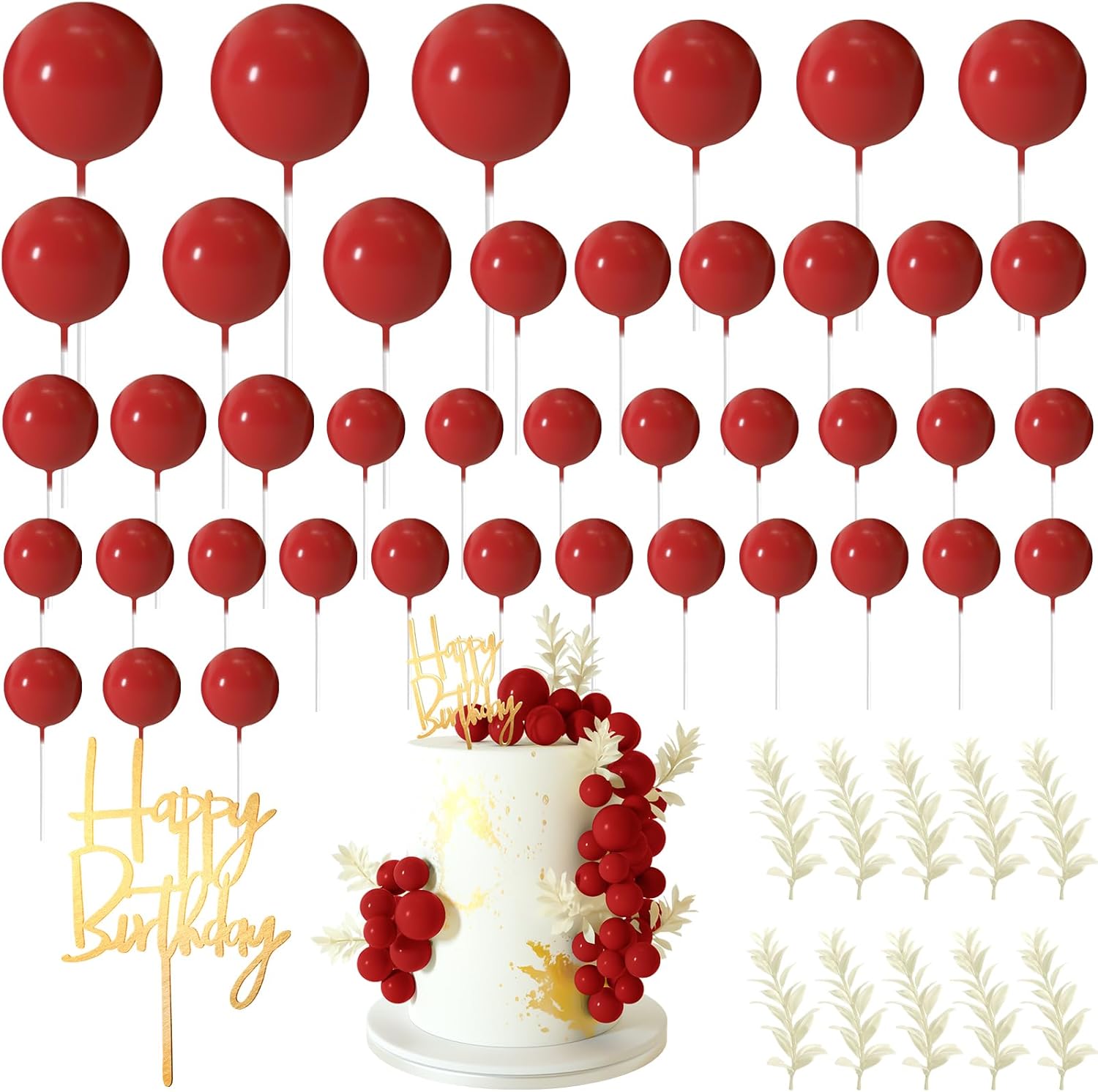 MIAHART Ball Cake Toppers Boho Grass Cake Topper Ball Cake Insert Decoration for Birthday Wedding Baby Shower Party Decorations Boho Themed Party Supplies (Red)