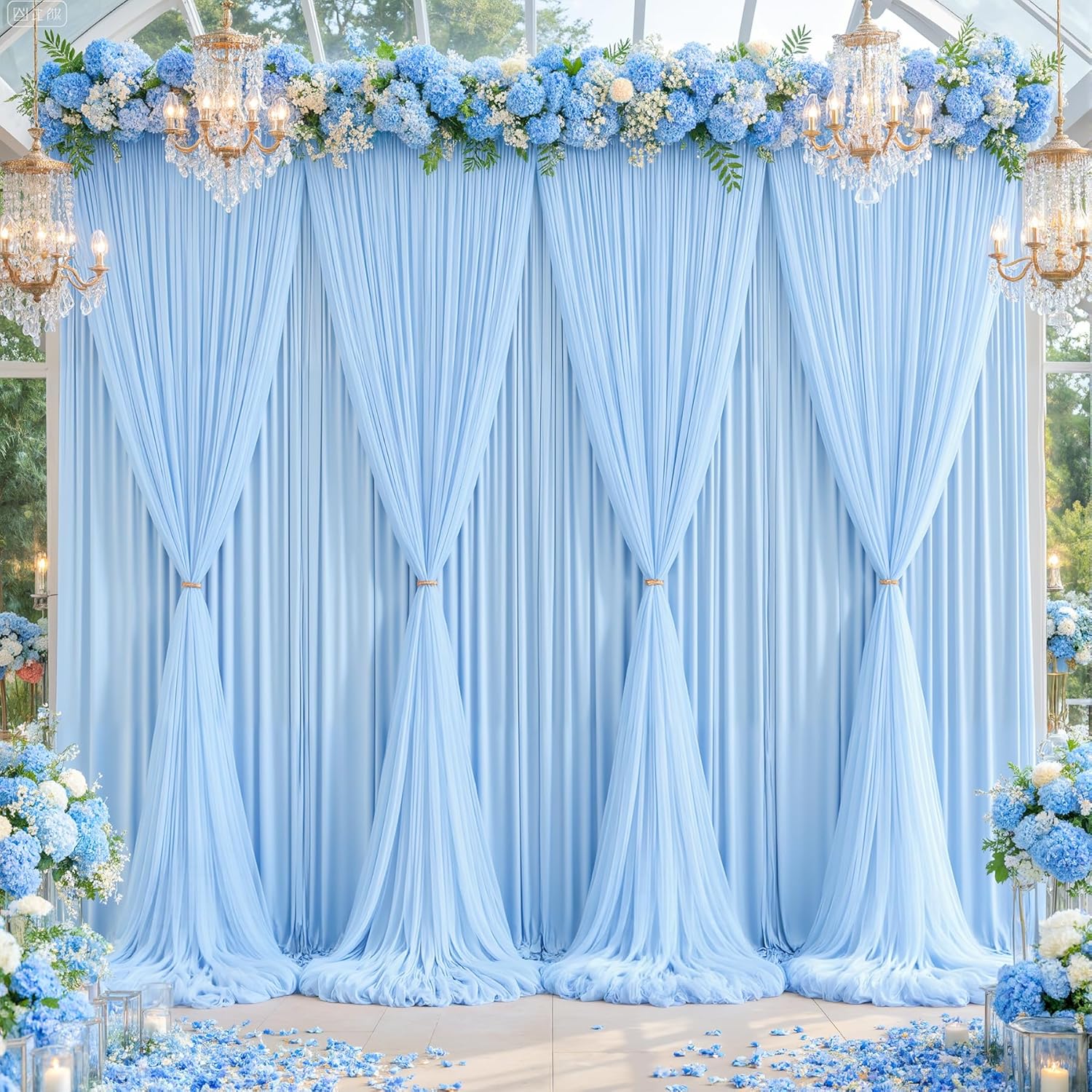Baby Blue Tulle Backdrop Curtain for Parties Wedding,10ft x 10ft Wrinkle Free Curtain Backdrop,2 Layer Drapes for Backdrop,Polyester Back Drop for Bridal Shower Birthday Baby Shower Photography