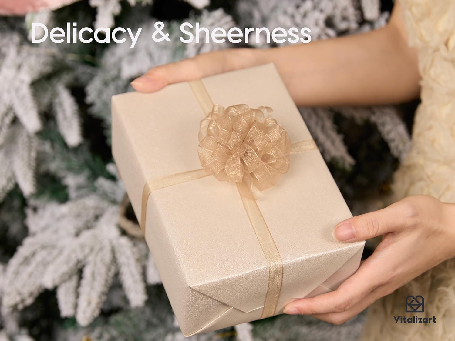 Vitalizart Organza Ribbon 3/8" x 30 Yd Cream White Rose Gold & Dusty Green Sheer Ribbons for Gift Wrapping Crafts Christmas Party Decor Bows Wedding Invitations Wreaths Bouquet