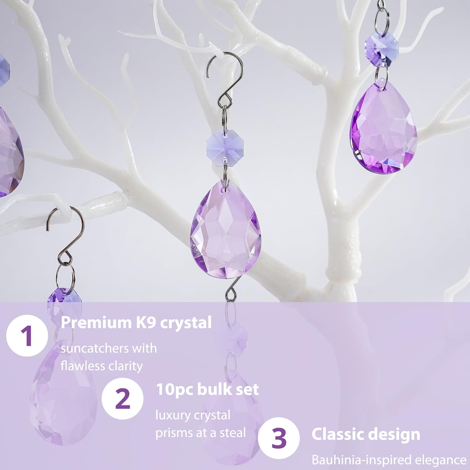 H&D HYALINE & DORA 3Inch Crystal Suncatcher Bauhinia Prisms Pendants 10Pcs Chandelier Crystals Replacement Hanging Sun Catcher Beads for DIY Arts Crafts Decor (Purple)