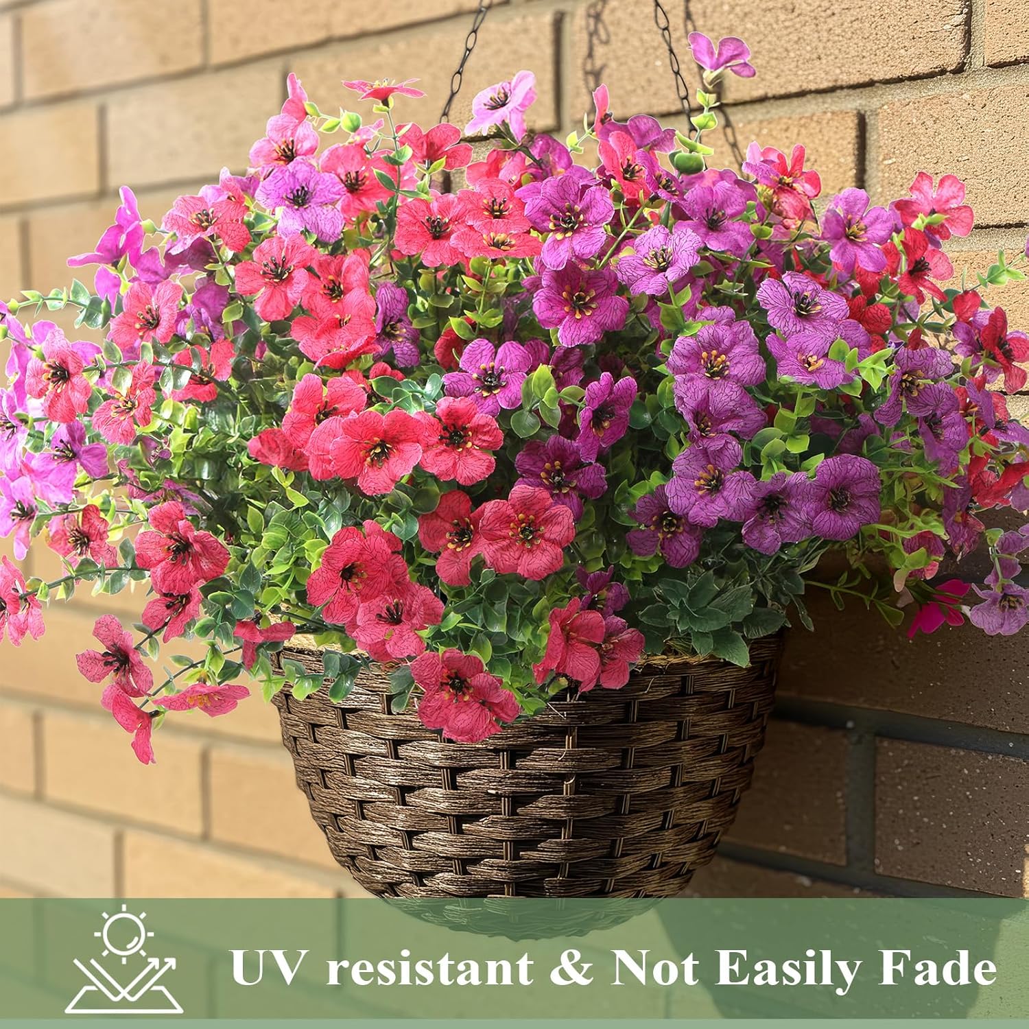 - UV Resistant Outdoor Artifical Flowers: These fake flowers are made of UV-coated silk flowers and plastic eucalyptus leaves that can withstand sunlight and wind, maintain their brilliance
