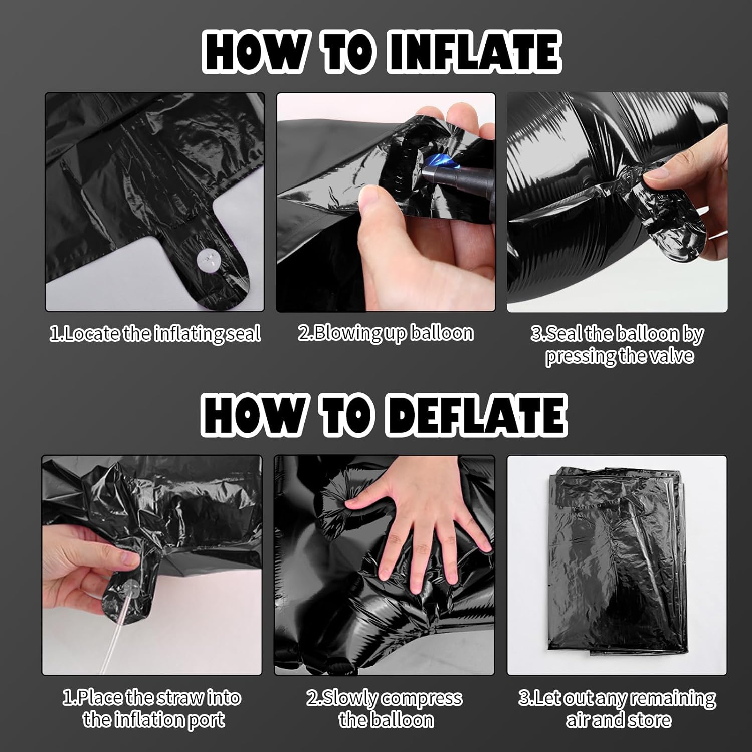 • Reusable Foil Balloons: The Black star balloon set is completely reusable. Avoid excessive friction and sharp objects when using it. Use a straw to deflate and flatten it after event, and it will still be a shining decoration at the party next time