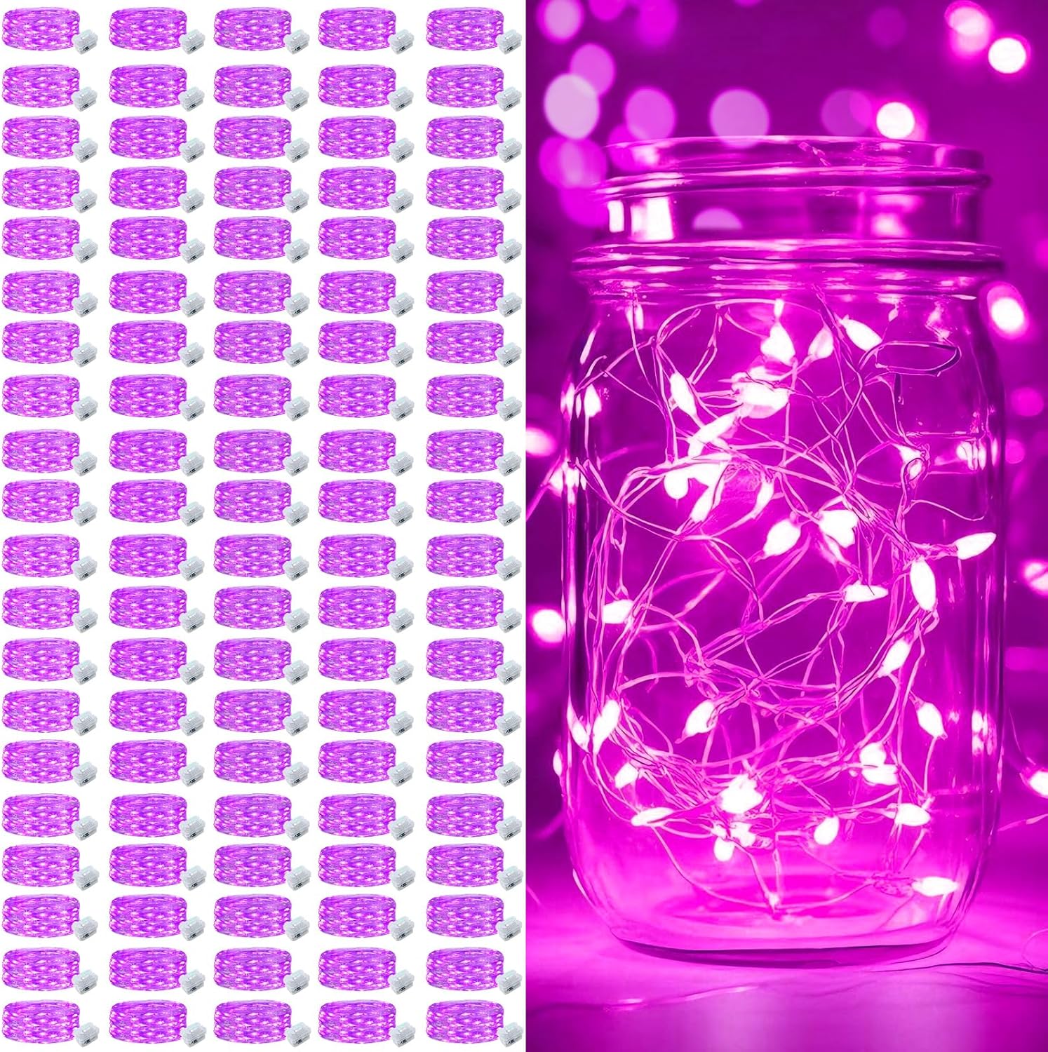 pozzolanas 100 Pack Pink Battery Operated String Lights - 7ft Waterproof Fairy Lights with 20 LEDs for Home, Mason Jar, Party, Wedding, Halloween, Christmas Decorations
