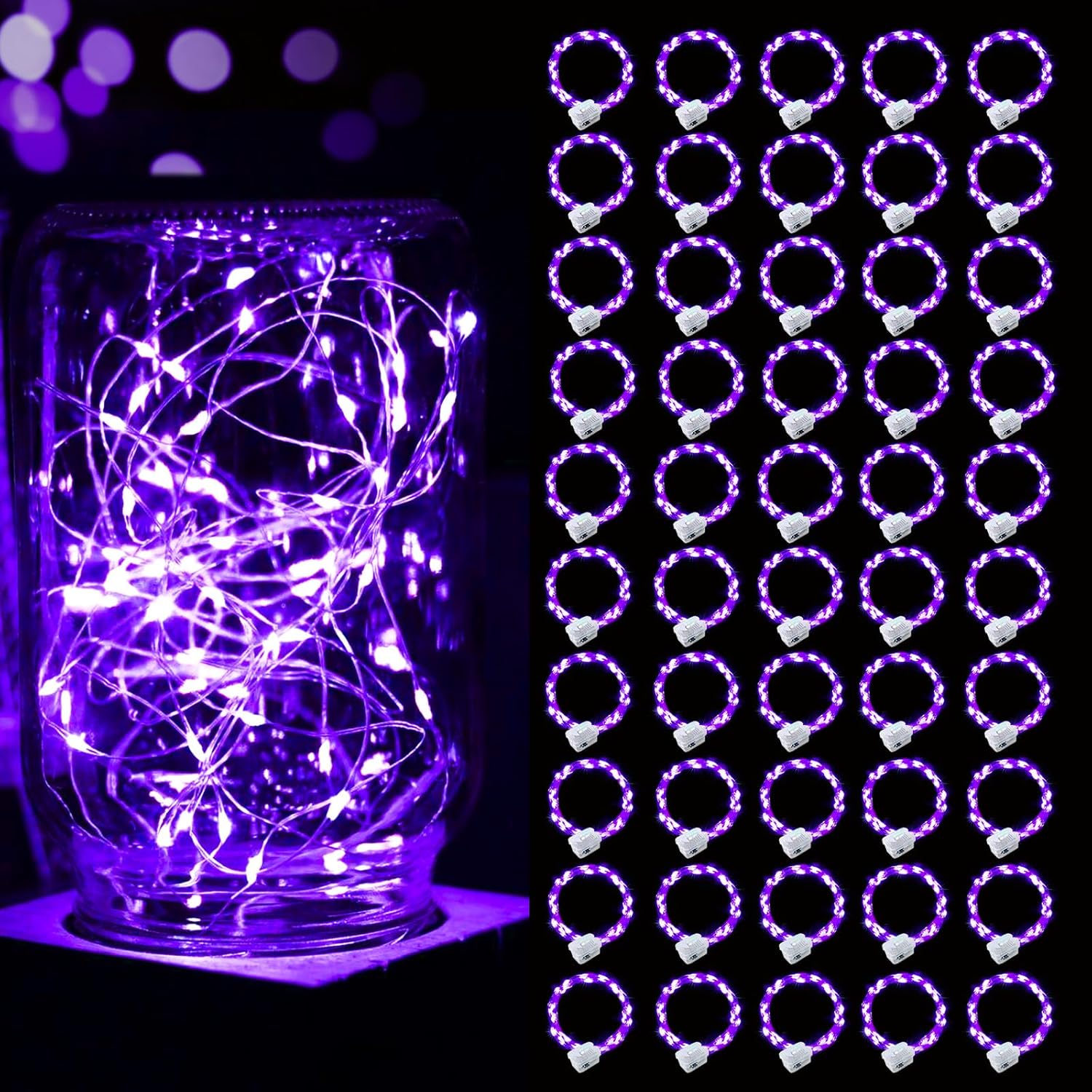 pozzolanas 50 Pack Purple Battery Operated String Lights - 7 ft Waterproof Fairy Lights with 20 LEDs for Home, Mason Jar, Party, Wedding, Halloween, Christmas Decorations
