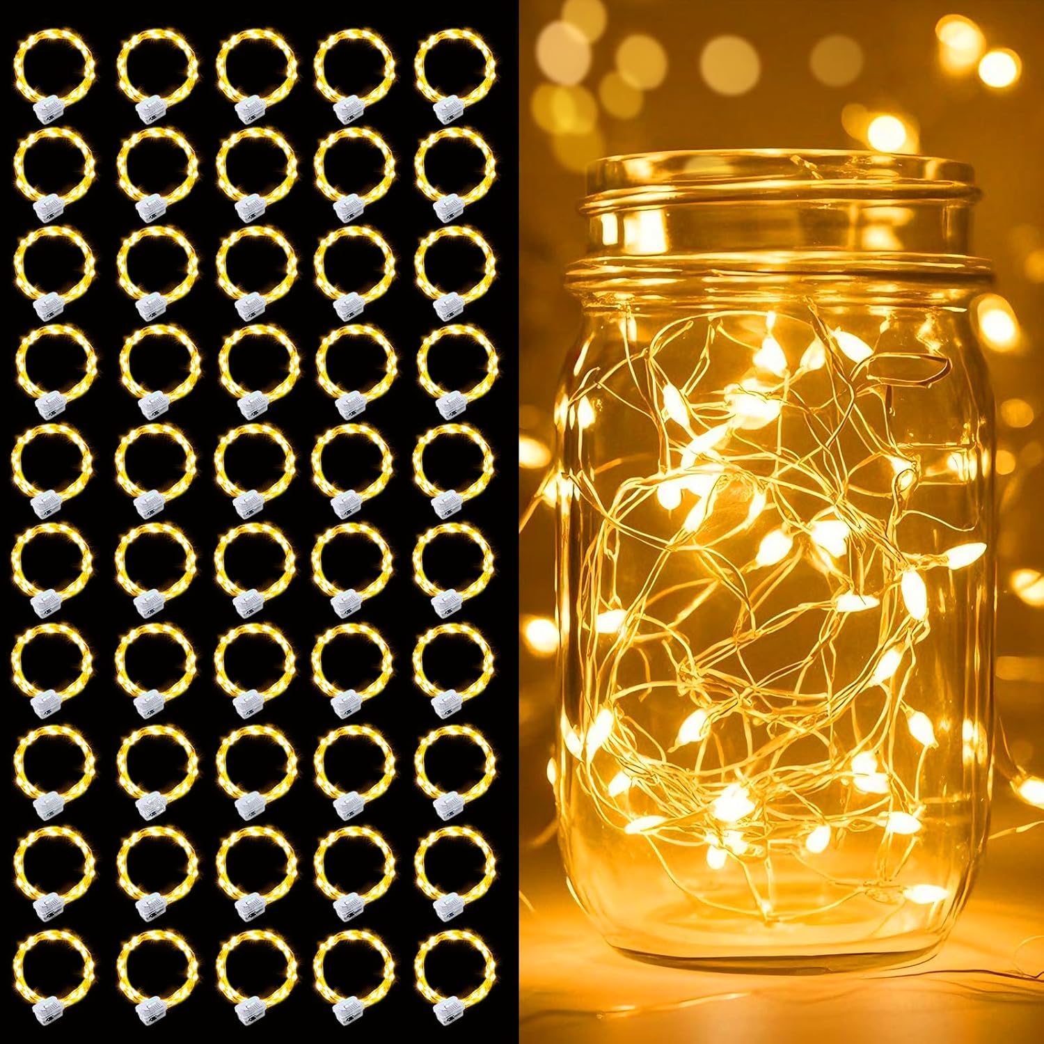 - Battery Operated LED Fairy Lights: Includes 50 packs of fairy lights, each with 20 mini LEDs on a 7 ft silver-plated copper wire for durability and flexibility; 4-inch LED spacing ensures even and beautiful illumination for a magical effect; Powered by LR44 batteries with up to 72 hours of battery life for long-lasting use