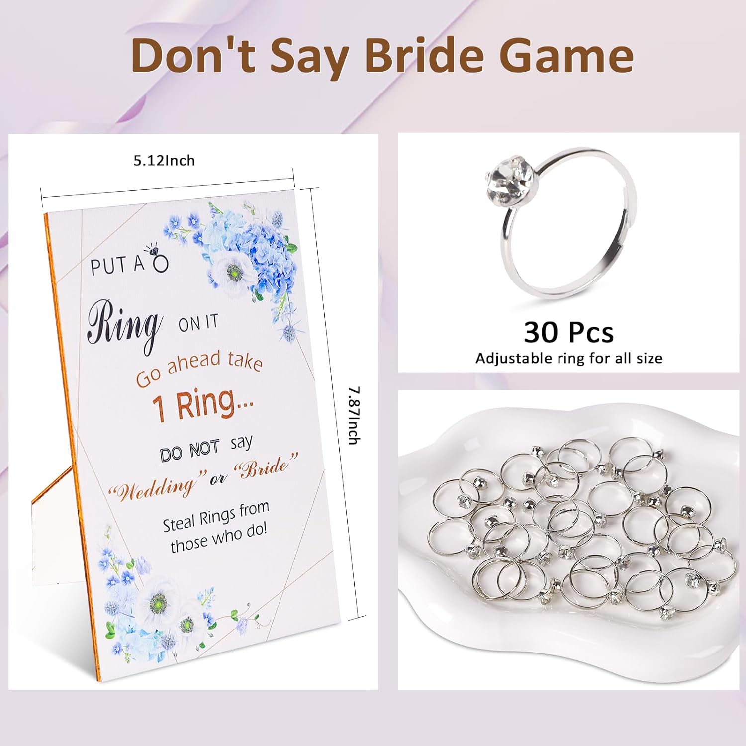 - Put a ring on it bridal shower game:50 pieces of bridal shower rings and the wooden sign( size is 5.12* 7.87 inches). "Put a Ring On It, Don not Say Bride or Wedding" is a classic and fun bridal shower game. The diameter of these fake diamond rings is adjustable,you can adjust to the size you want