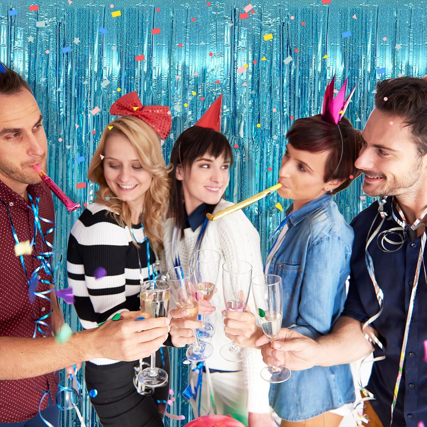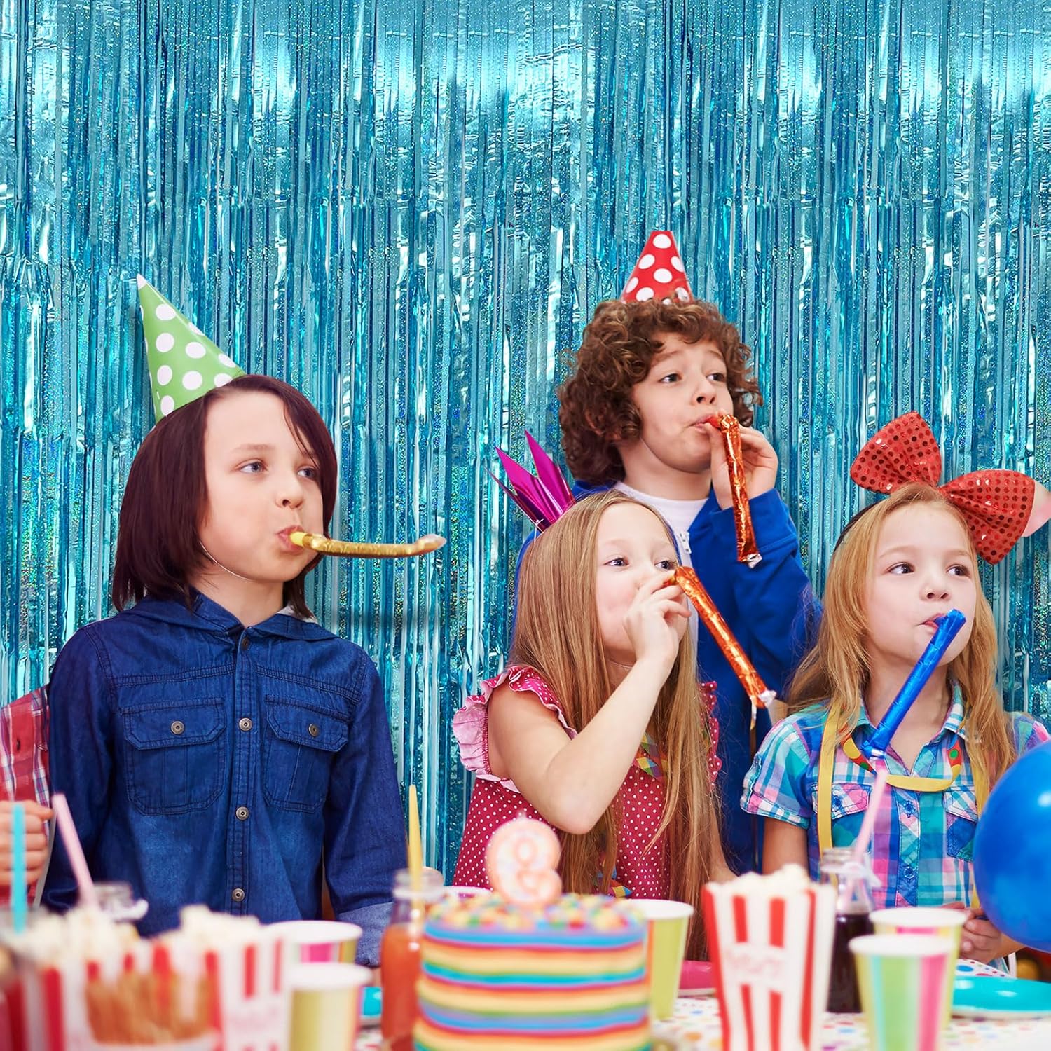 - Glitter Fringe Backdrop Set (2-Pack): Each dazzling curtain measures 3.28ft x 6.56ft β perfect for doors, walls, or photo booths! These extra-long foil streamers instantly transform any space into a party-ready celebration zone. Mix, layer, and customize your decor for the best results.