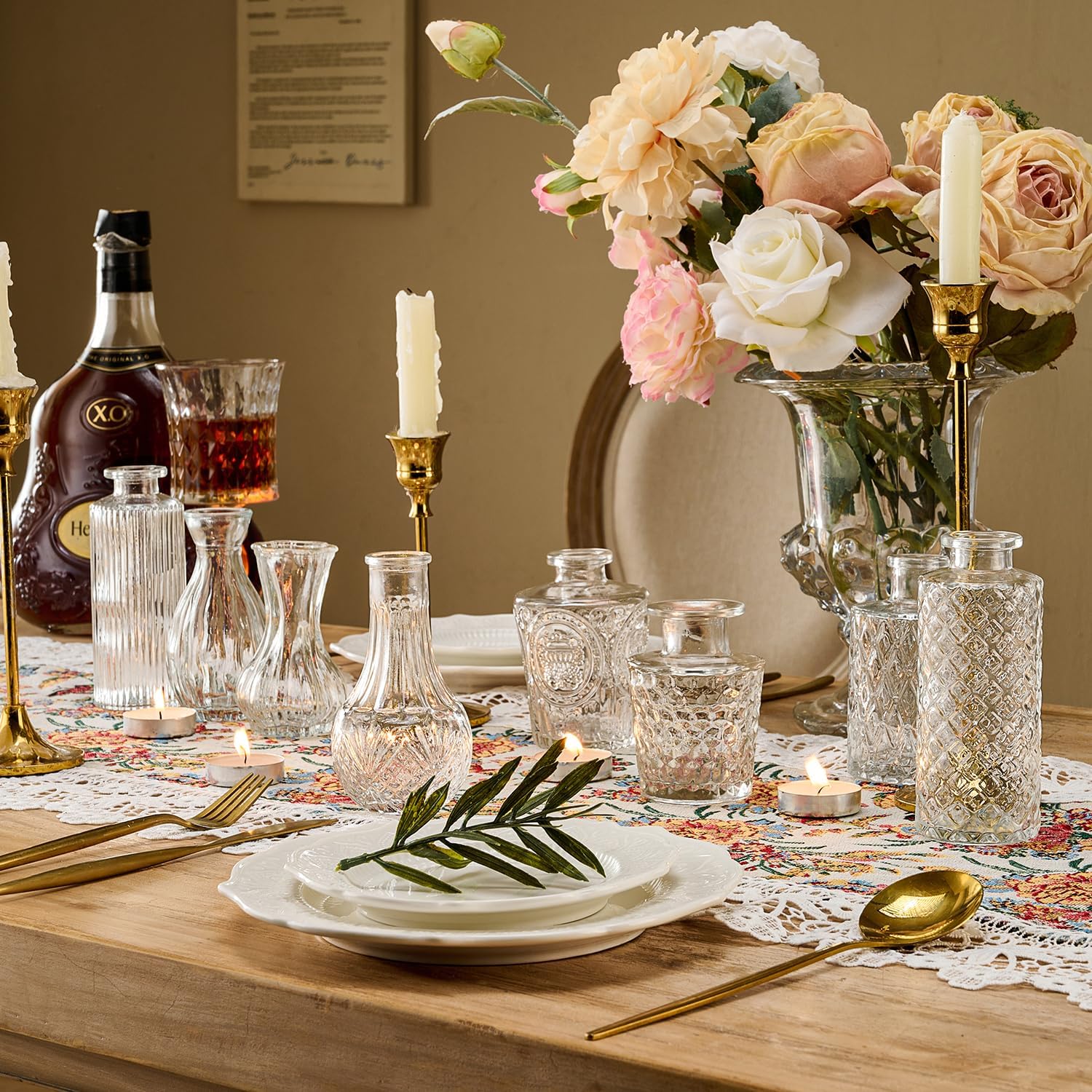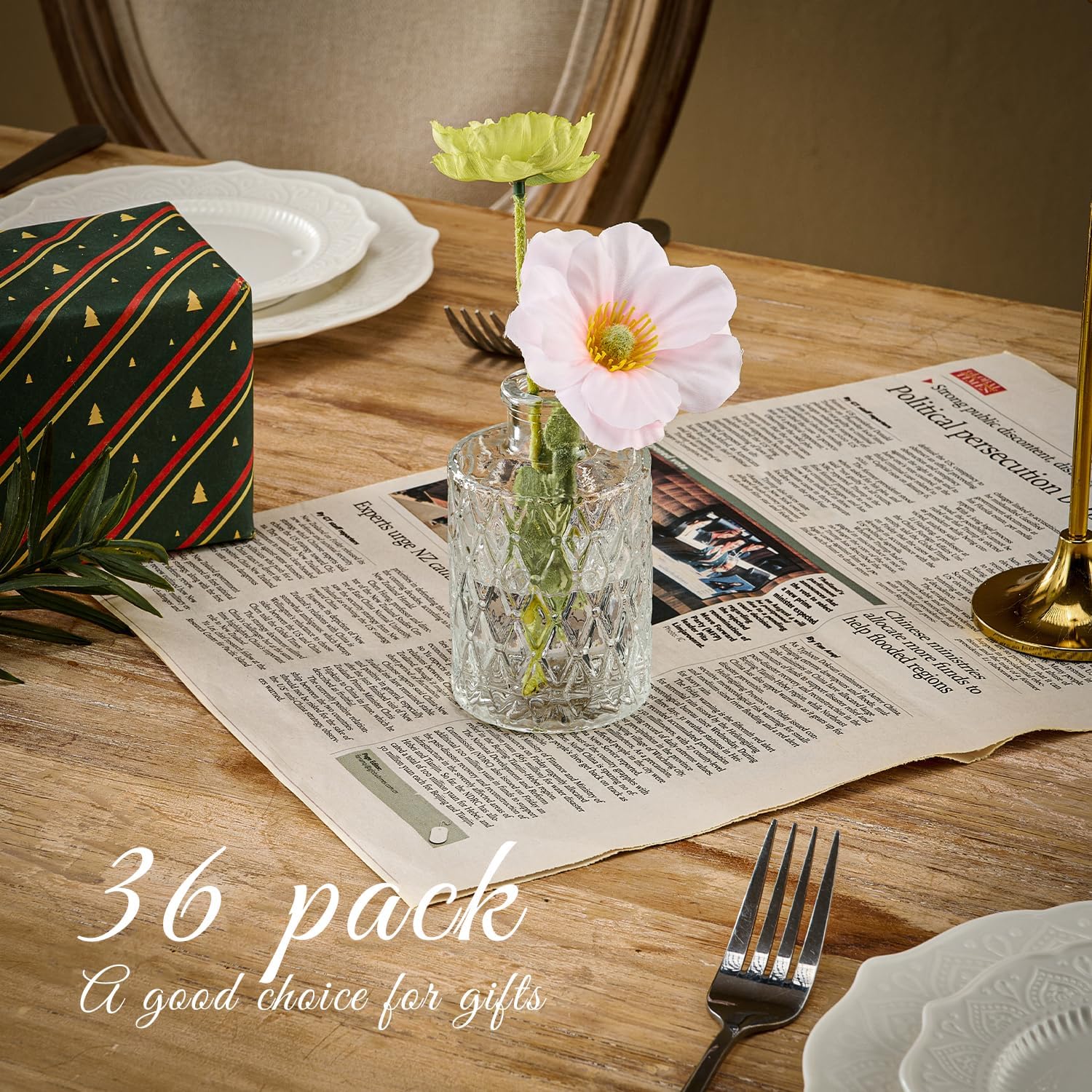 - Versatile Flower Bud Vase Set: This set comprises 36 diverse transparent glass flower bud vases, each adorned with etched designs to further elevate their charm. It is perfectly suited for any home décor. Whether placed as a centerpiece on dining tables, window sills, or wedding banquet tables, these small vintage crystal vases will lend an air of elegance to the setting.