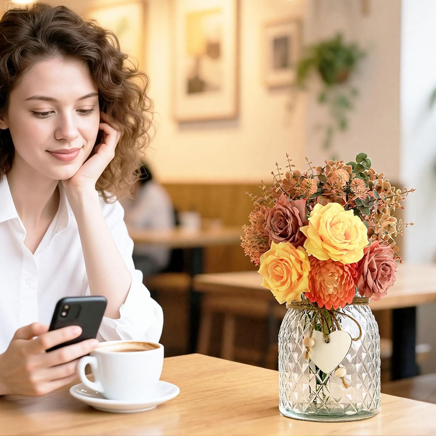 - Versatile Fall Decoration – This silk rose centerpiece adds a warm autumn vibe to various spaces: dining room table centerpiece, living room, kitchen island, nightstand, bathroom vanity, mantle decor, or farmhouse entryway. Perfect for fall home decor, Thanksgiving, wedding centerpieces, and rustic table decorations.