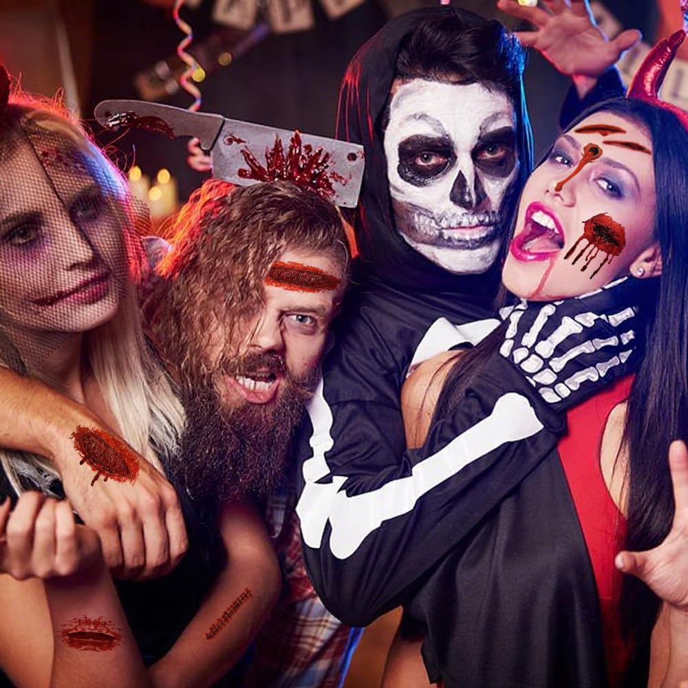 - 【Perfect for Halloween, Cosplay & Pranks】The Halloween wound temp tattoos are great for Halloween parties, Day of The Dead, scary Halloween costumes, sfx makeup, zombie cosplay, party favor supplies, car decals, masquerade or just scaring your friends. Adds a gruesome touch to any costume or event