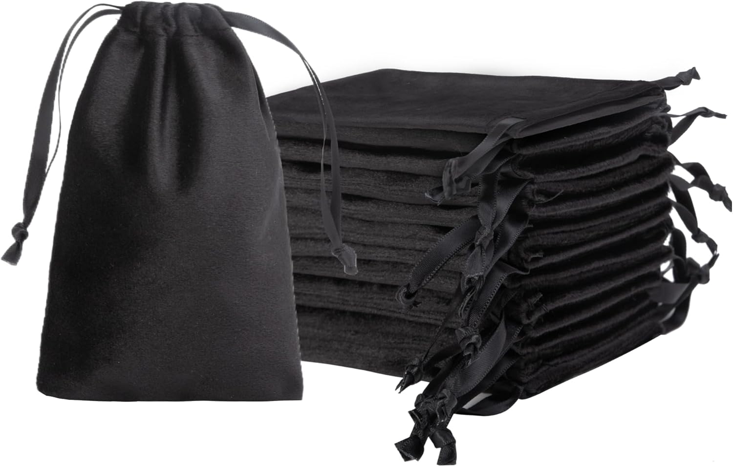 - DRAWSTRING DESIGN: Featuring premium satin ribbon drawstrings, practical and beautiful, the satin drawstring pulls together and can be tied in a bow, making the gift bags easy to open and close, keeping your contents safe inside. The plush velvet fabric combines elegance with durability, making it convenient to store your jewelry