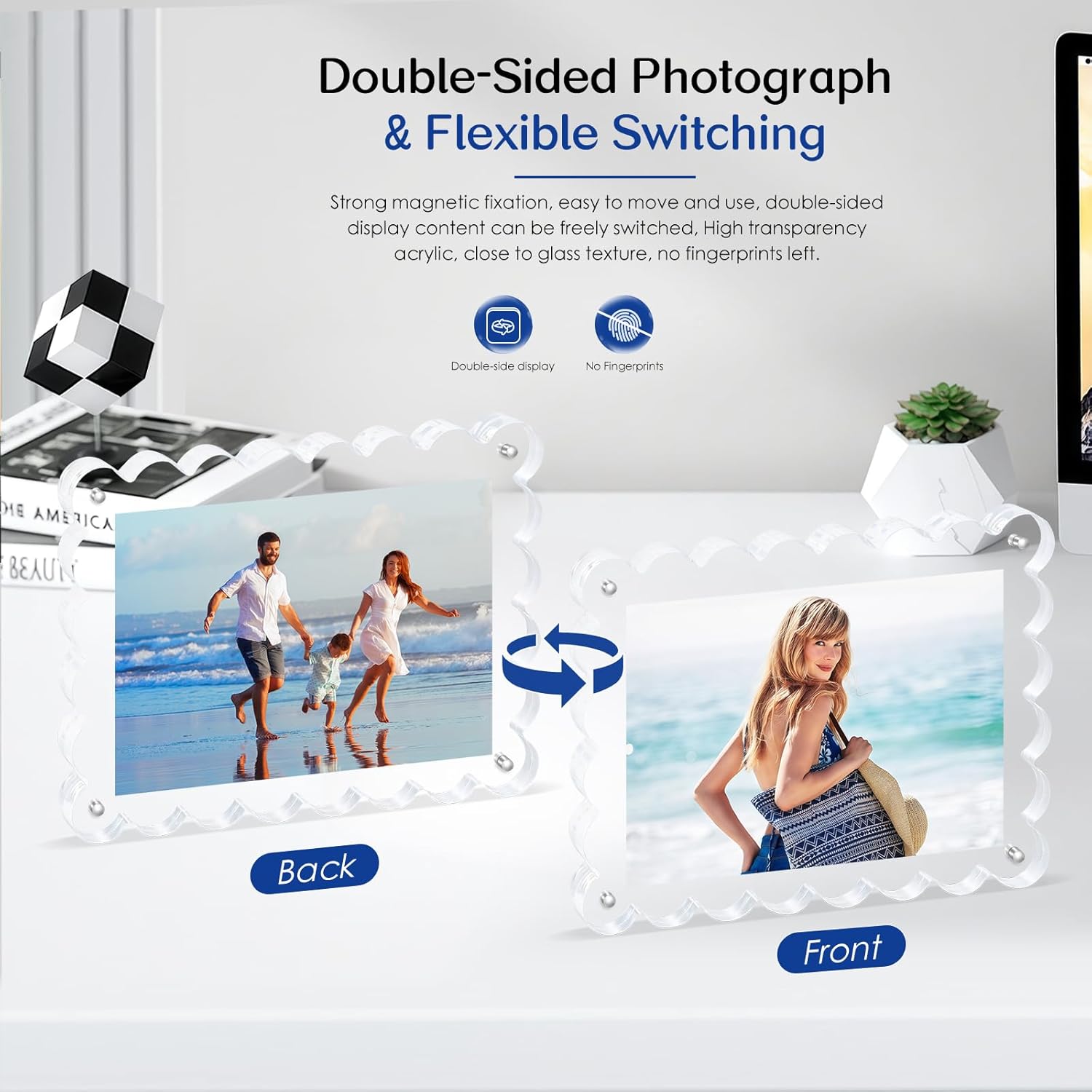 - 【Retro-Inspired Magnetic Design with Secure Closure 】 Experience timeless elegance with our scalloped acrylic magnetic photo frame. The dual-sided magnetic system ensures effortless photo swaps while maintaining a retro-modern aesthetic. Perfect for creating visual depth in home galleries or offices