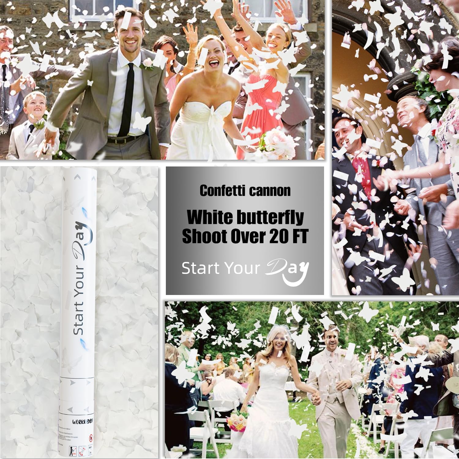 White Butterfly Confetti Poppers, 15 Inch Butterfly Party Poppers for Birthday, Wedding, Halloween Celebrations - Air Powered Confetti Gun