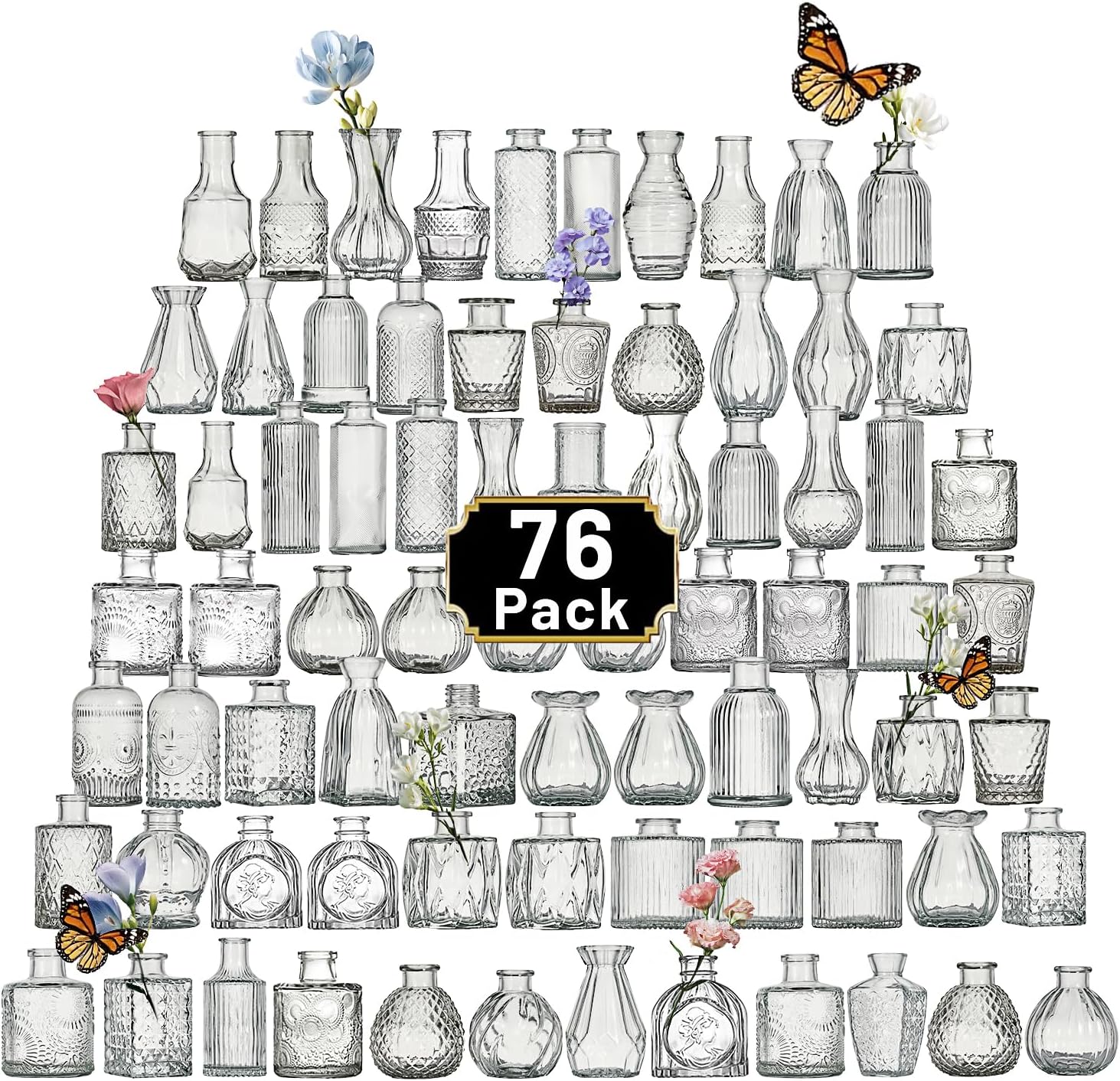 Glass Bud Vase Set of 76 Pcs Small Minimalist Vases for Flowers, Vintage Rustic Home Decor for Table Centerpiece Wedding Party, Modern Clear Aromatherapy Bottle for Living Room Bedroom