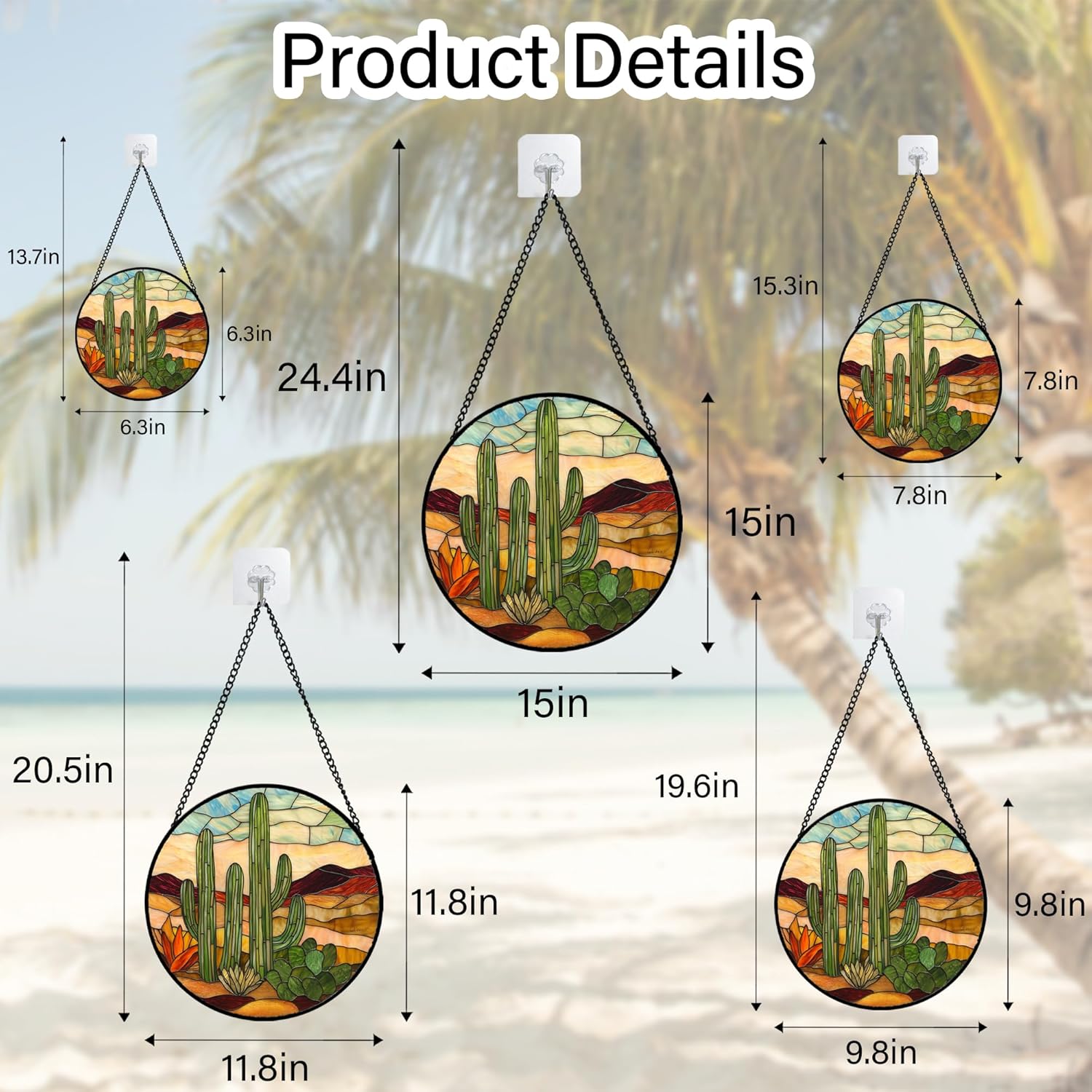 Stained Glass Window Hanging, Green Cactus Sun Catcher for Door Terrace Garden Home Decor, Abstract Desert Landscape Suncatcher Birthday Gifts for Lovers Women Men Dad Mom Nana 15 in