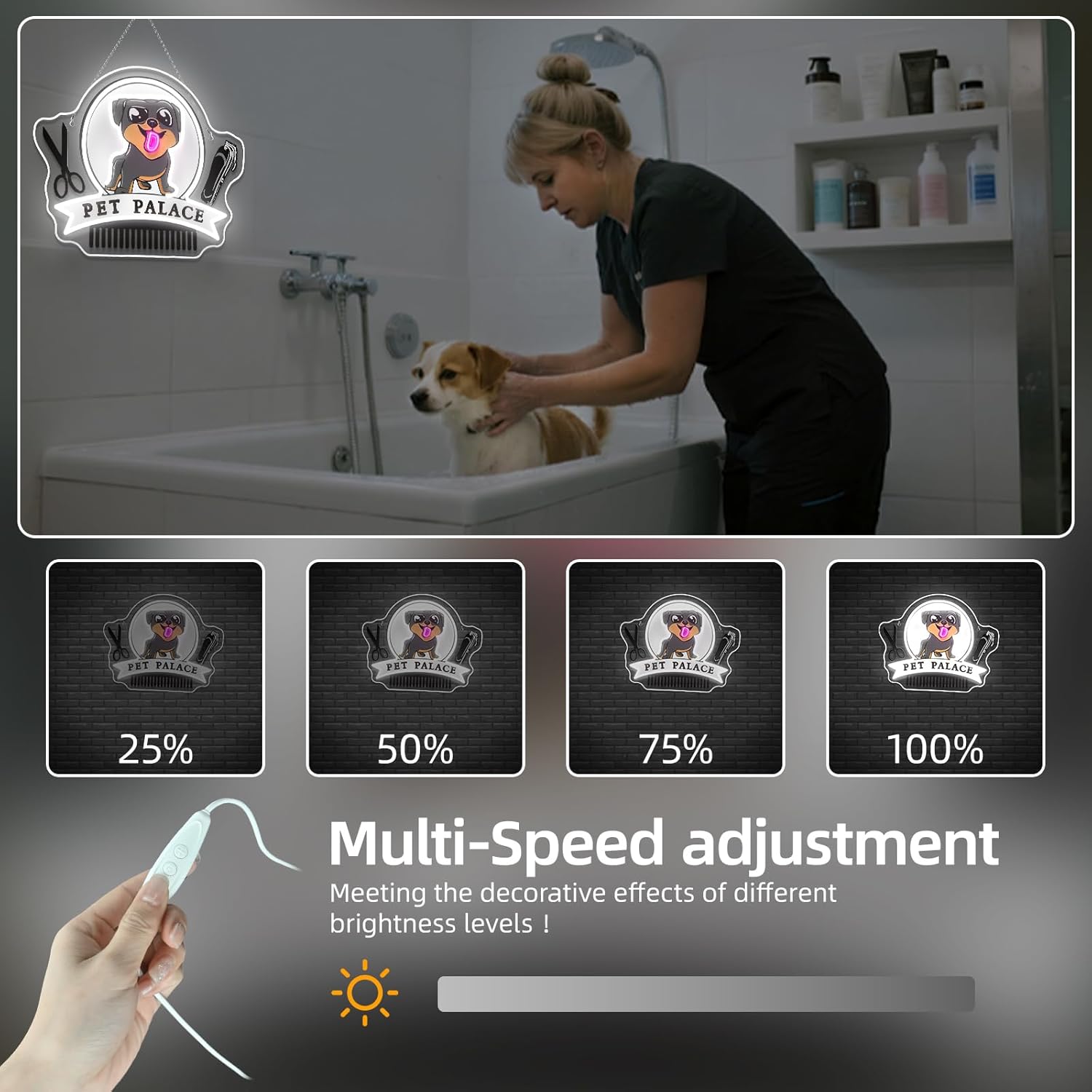 - Adjustable Neon Sign: Brightness adjustable from 10% to 100%, perfect for pet spaces. Ideal for grooming areas, checkout counters, or entrances. Its soft light creates a welcoming and relaxing atmosphere for pets and owners alike.