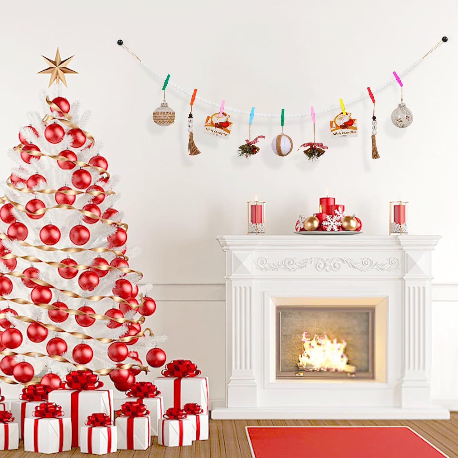 - High-Quality Material: Photo garland is handmade by white wooden beads and jute rope, which is durable, corrosion-resistant and non-toxic, not easy to break and fade, can be applied for a long time. Note: The colours of the wooden clips are random