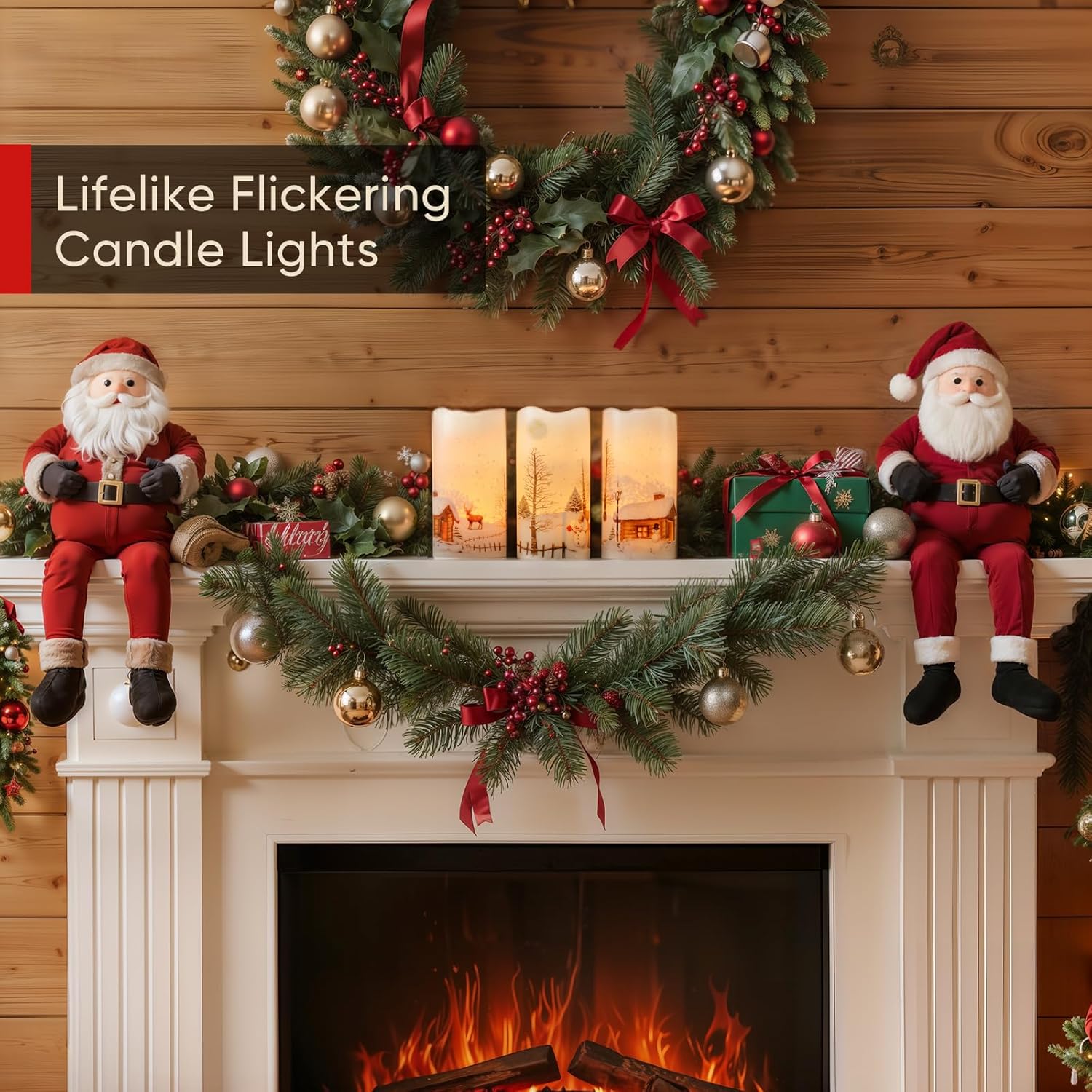 - Package Include: This Christmas Candle Set include 3 wax flameless pillar candles(D3"x H6"), 1x remote control, 1x user manual. Each candle is powered by 2 AA batteries(300+ hours with high-grade batteries, NOT Included). All these candles have been tested strictly by Homemory.