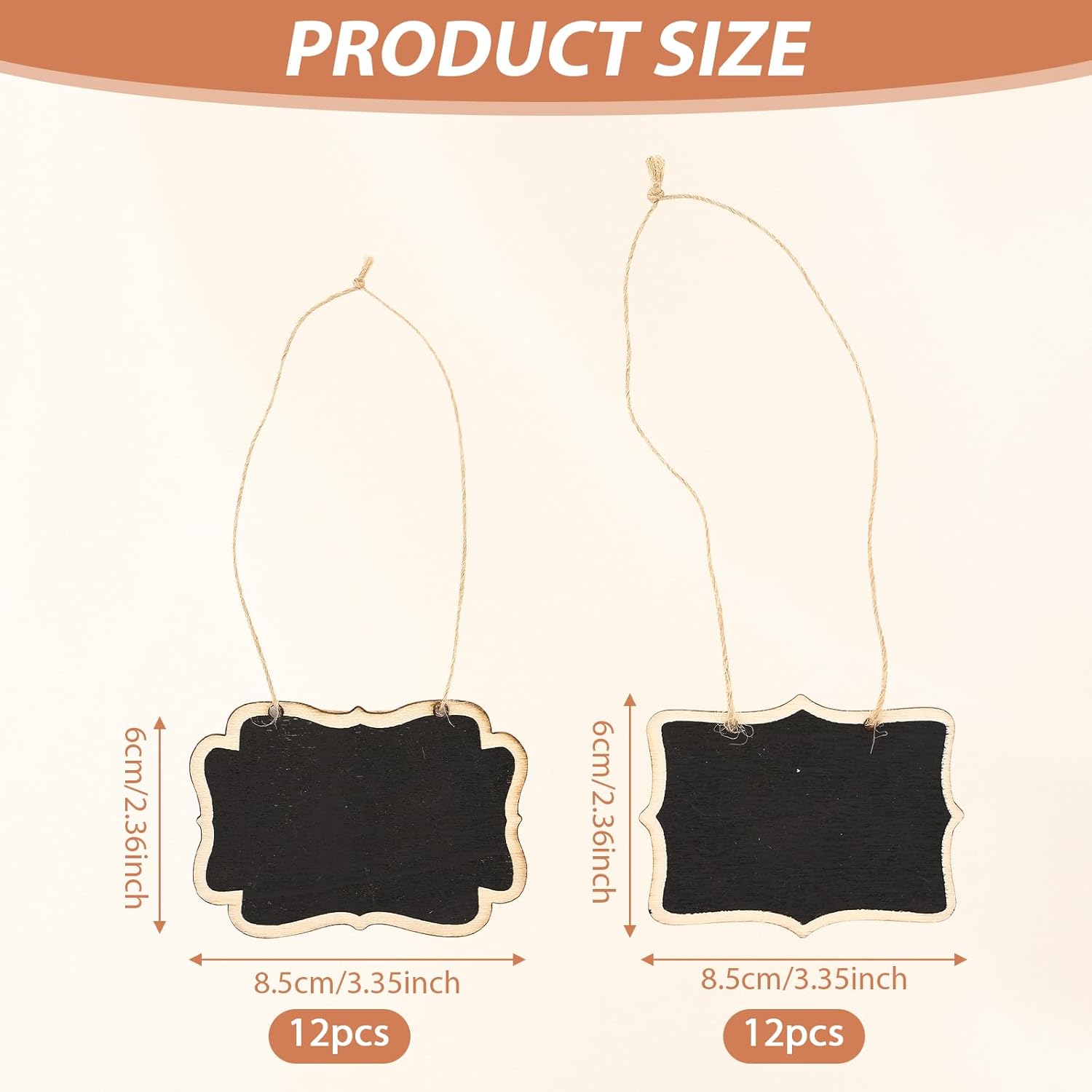 24 Pack Mini Wooden Chalkboard Signs - Reusable Hanging Food Labels for Party Buffet, Place Cards, Name Tags and Table Numbers