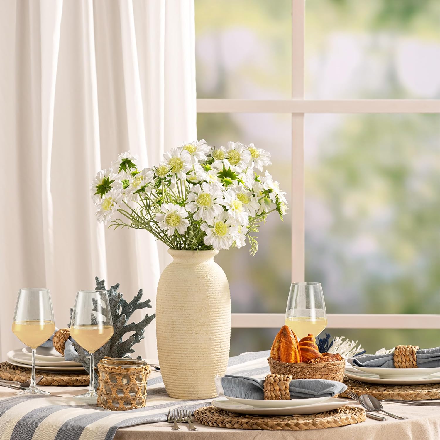 Ceramic Flower Vase, 12.5" Large Rustic Farmhouse Vases Home Decor Tall Pottery Decorative Pampas Vase for Table Living Room Entryway Mantel Bookshelf Bedroom Bathroom Kitchen-White