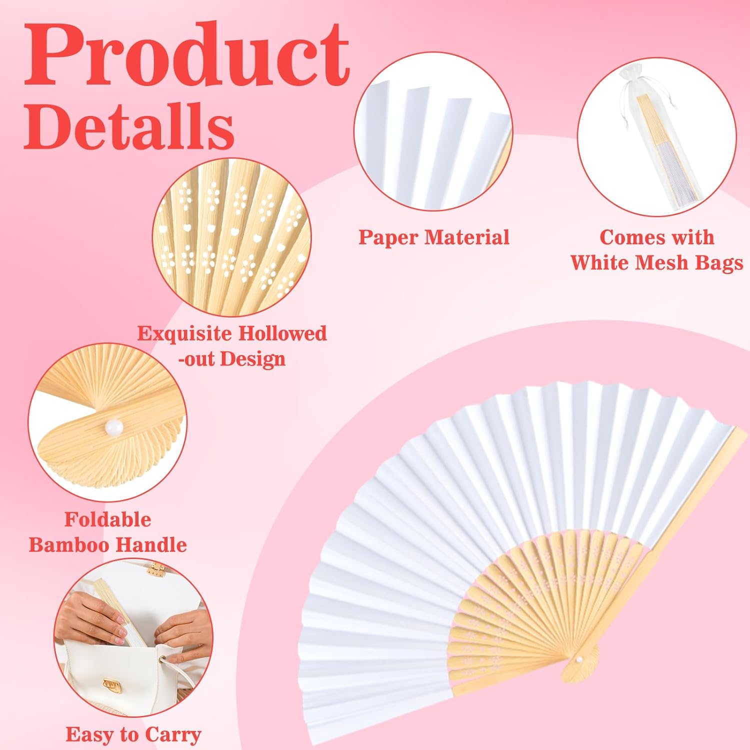 - Set Contents: You will get 24 white paper fans, each folding fan comes with a mesh bag, which are good looking and practical, can meet various occasions needs