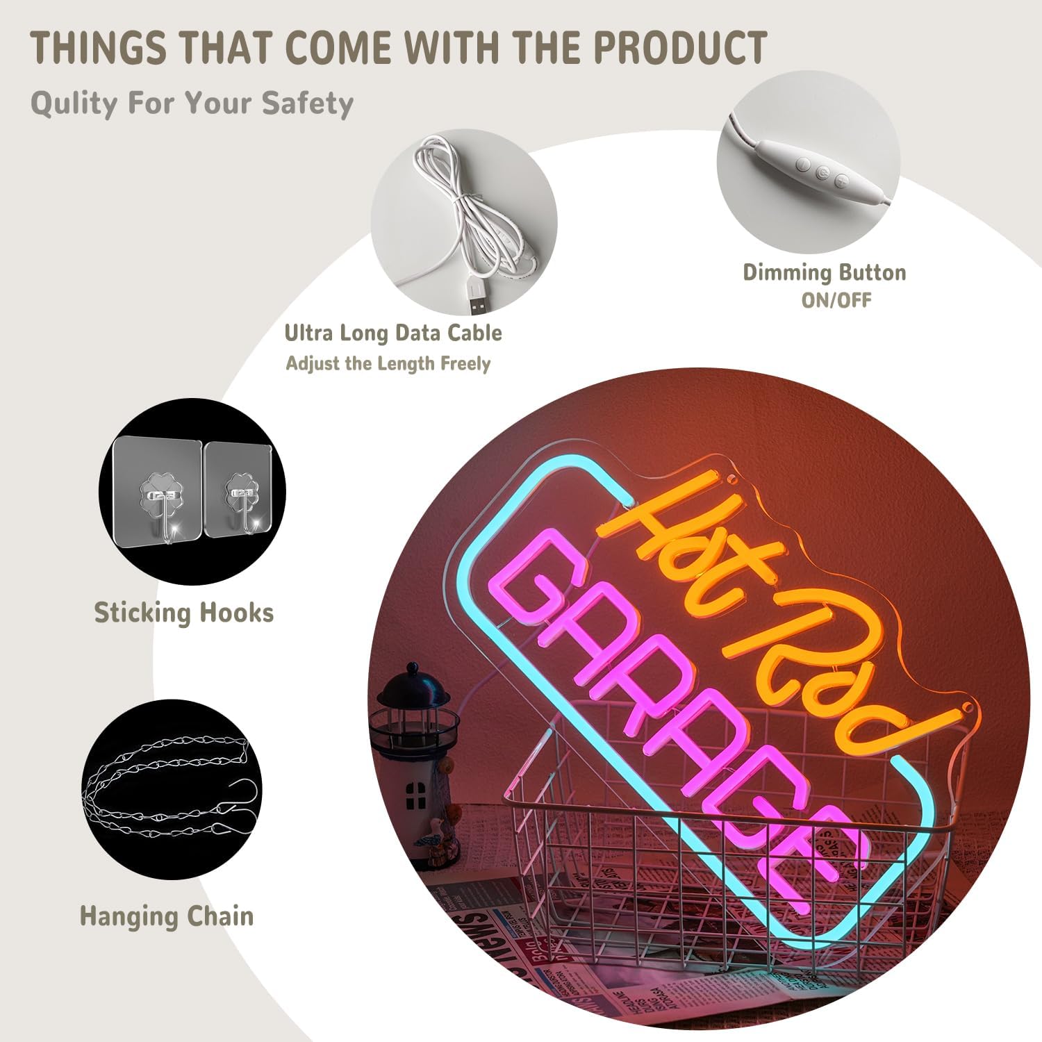 - Applicable Scenes: Hot rod garage neon signs are suitable for decorating garages, pakings, stores, shopping malls and so on.