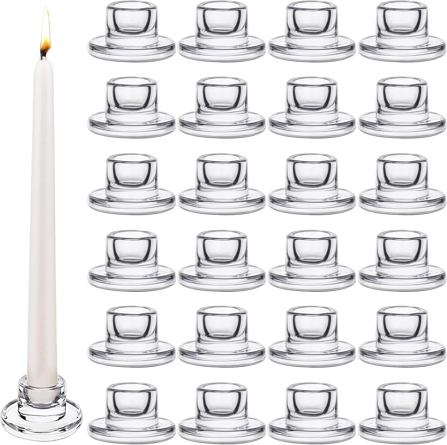 - Mini Candle Holder Design: these 24 pcs mini candle holders boast a classic, pointed candlestick shape crafted from high clarity glass; Their timeless design is nice for coordinating with any decor, accommodating both short and long decorative candlesticks or flameless taper candles effortlessly