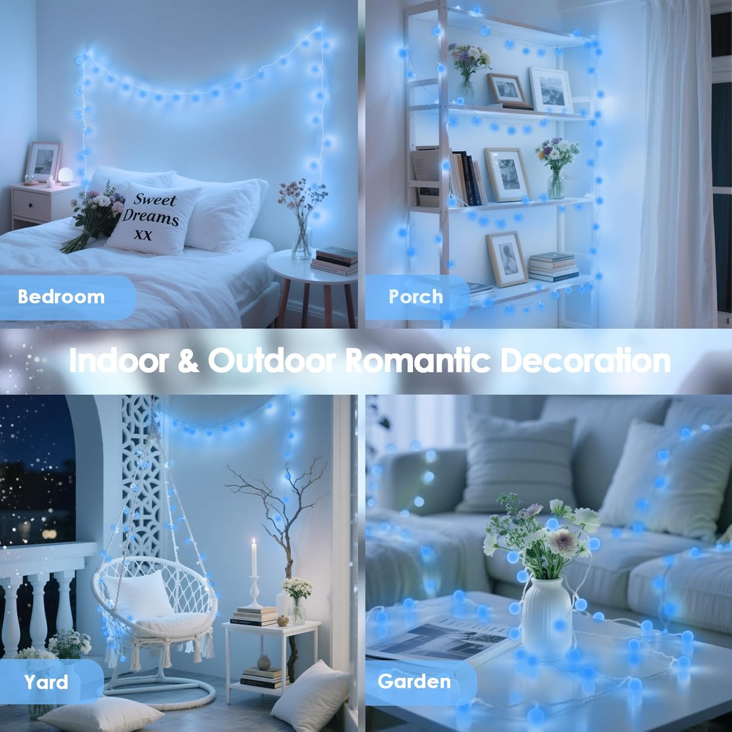 100LED Blue Connectable String Lights Indoor Outdoor for Bedroom, 43ft Christmas Lights with Remote & Timer, Plug in 8 Modes Waterproof Globe Fairy Light for Christmas Decor Room Classroom Wedding