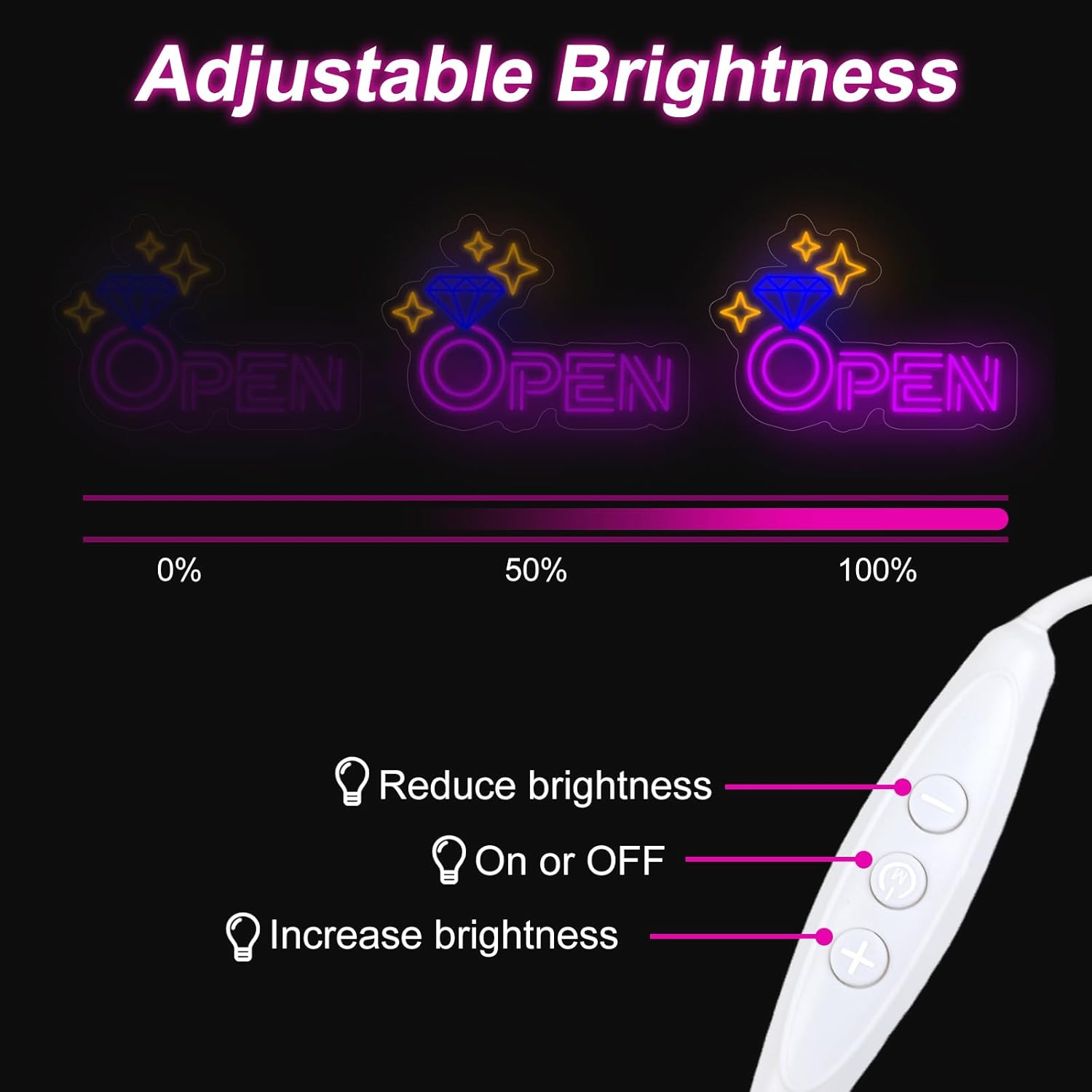 - What you get: Diamond open neon sign x1, hanging chain x1, wall hooks x2. Every LED light undergoes rigorous quality checks before it ships. If you have any problem with our neon light, please feel free to contact us. We will try our best to serve you