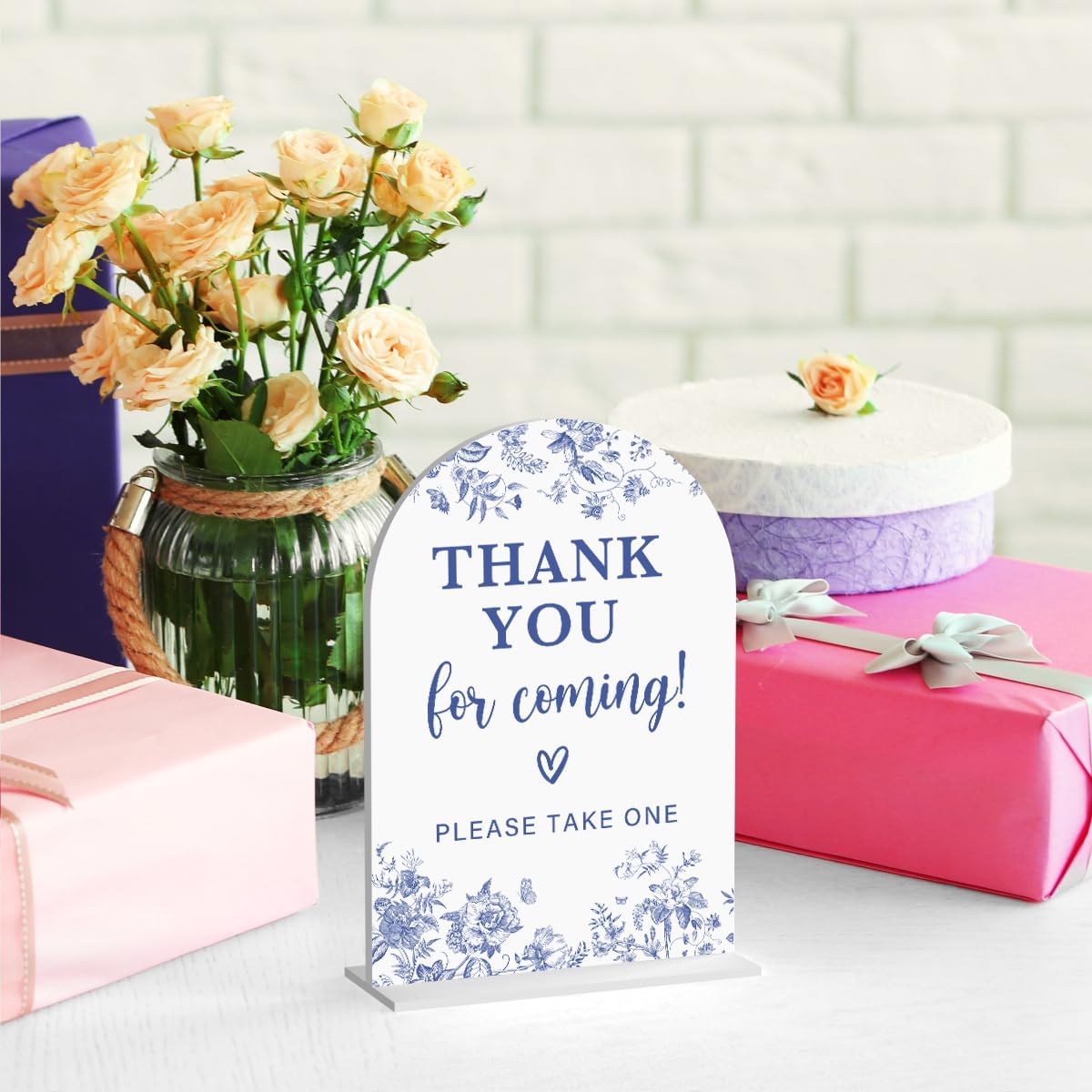 Acrylic Wedding Signs, Dusty Blue Wedding Decor, Blue Weddings Decor, Thank You for Coming Sign for Reception, Modern Calligraphy Arch Acrylic Table Top Sign for Weddings Parties Dinners (White)