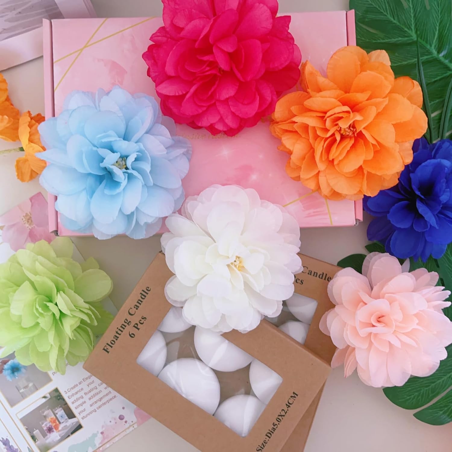 - 24-PCS MATCHED FLOATING SET: This combo include 12 pcs artificial flower and 12 pcs floating candles. Bule flowers’ soft texture and vibrant colors complement the candles’ warm glow, saving you the trouble of matching separate items