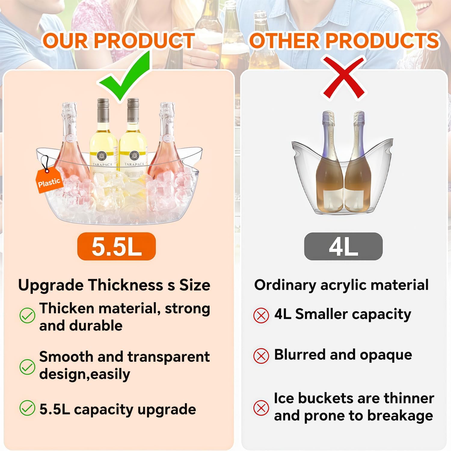 Ice Buckets for parties Wine Bucket, Clear Acrylic 5.5 Liter Plastic Tub for Drinks and Parties, Food Grade, Perfect for Wine, Champagne or Beer Bottles (2Pcs)