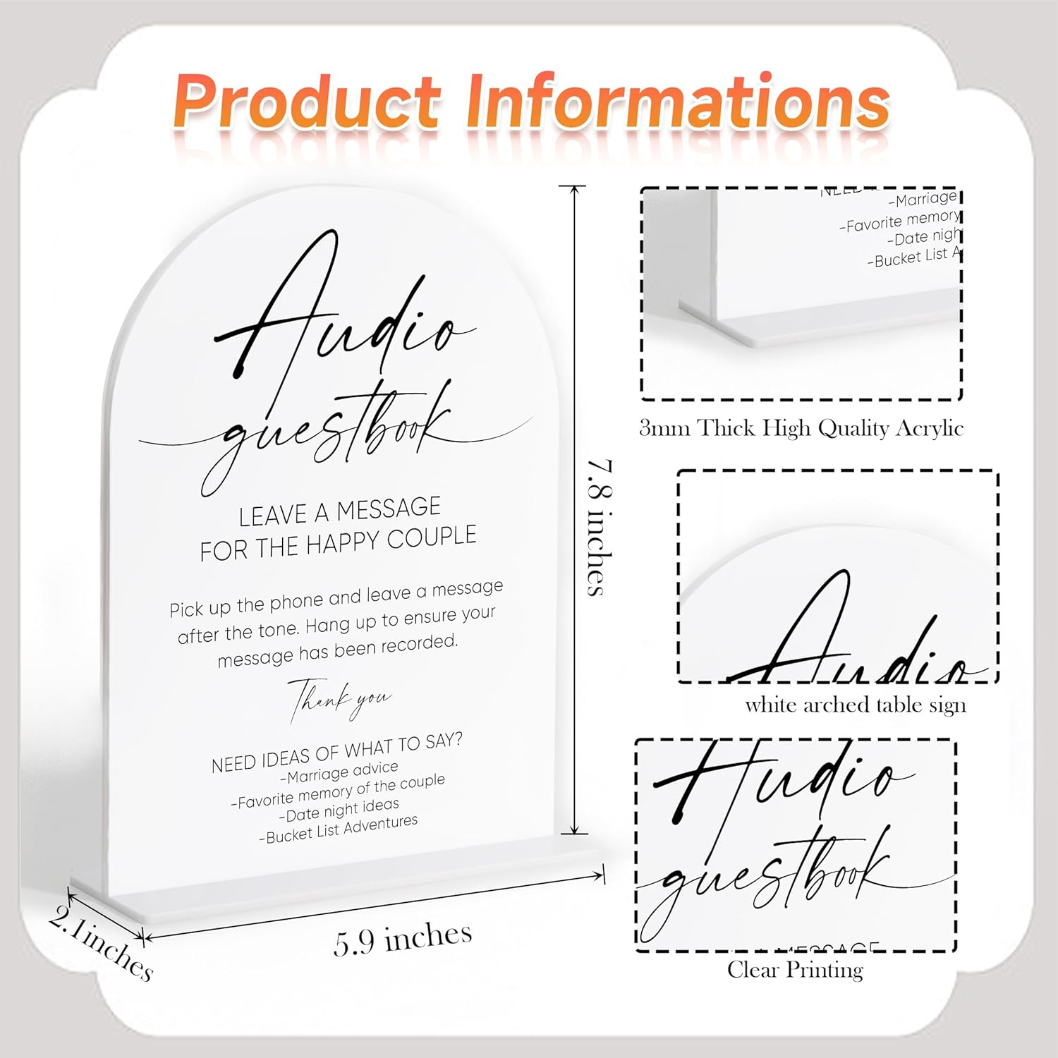 Audio Guest Book Sign, White Arch Acrylic Wedding Sign, Audio Guest Book Wedding Phone, Bridal Shower Decor, Engagement Party Decor, Centerpiece Table Decorations Party for Bride and Groom-19
