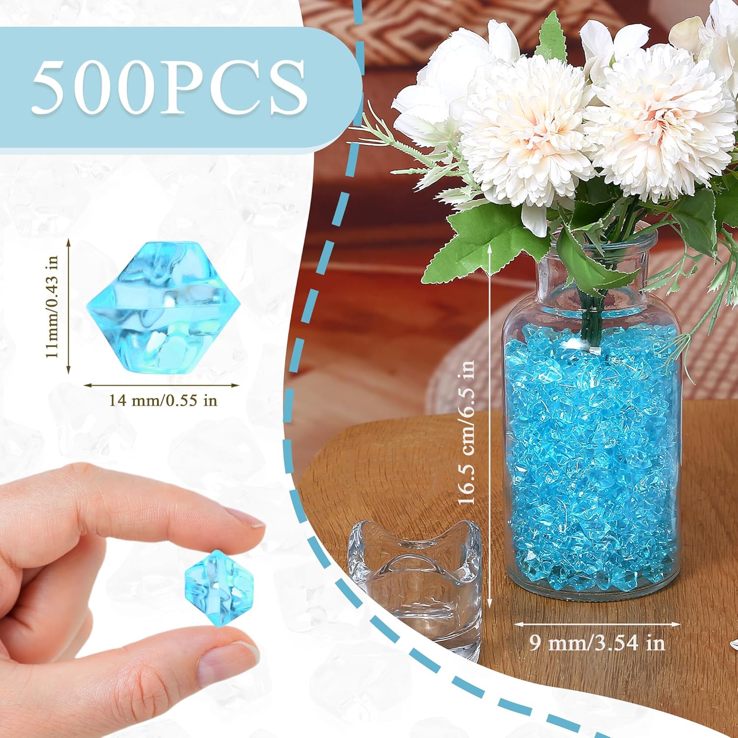 LAIDANLA 500PCS Teal Acrylic Gems Vase Fillers Plastic Diamonds Teal Fake Ice Cubes Fake Crushed Rocks for Centerpiece DIY Party Table Scatter Prop Wedding Decoration Accessories