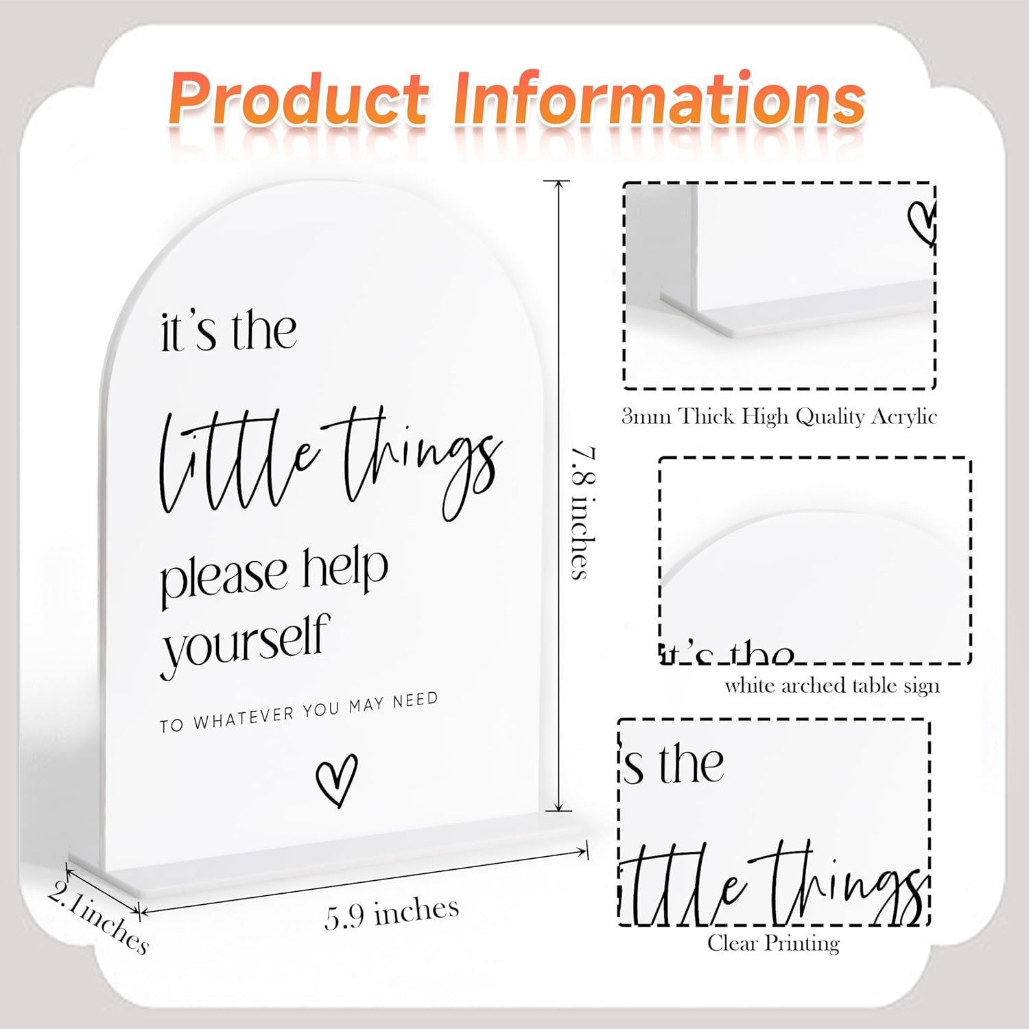 - Thoughtful Gift Idea: A wonderful wedding gift for friends or family. This white arch acrylic wedding sign adds a personal touch to engagement parties or bridal showers, making it a cherished keepsake.