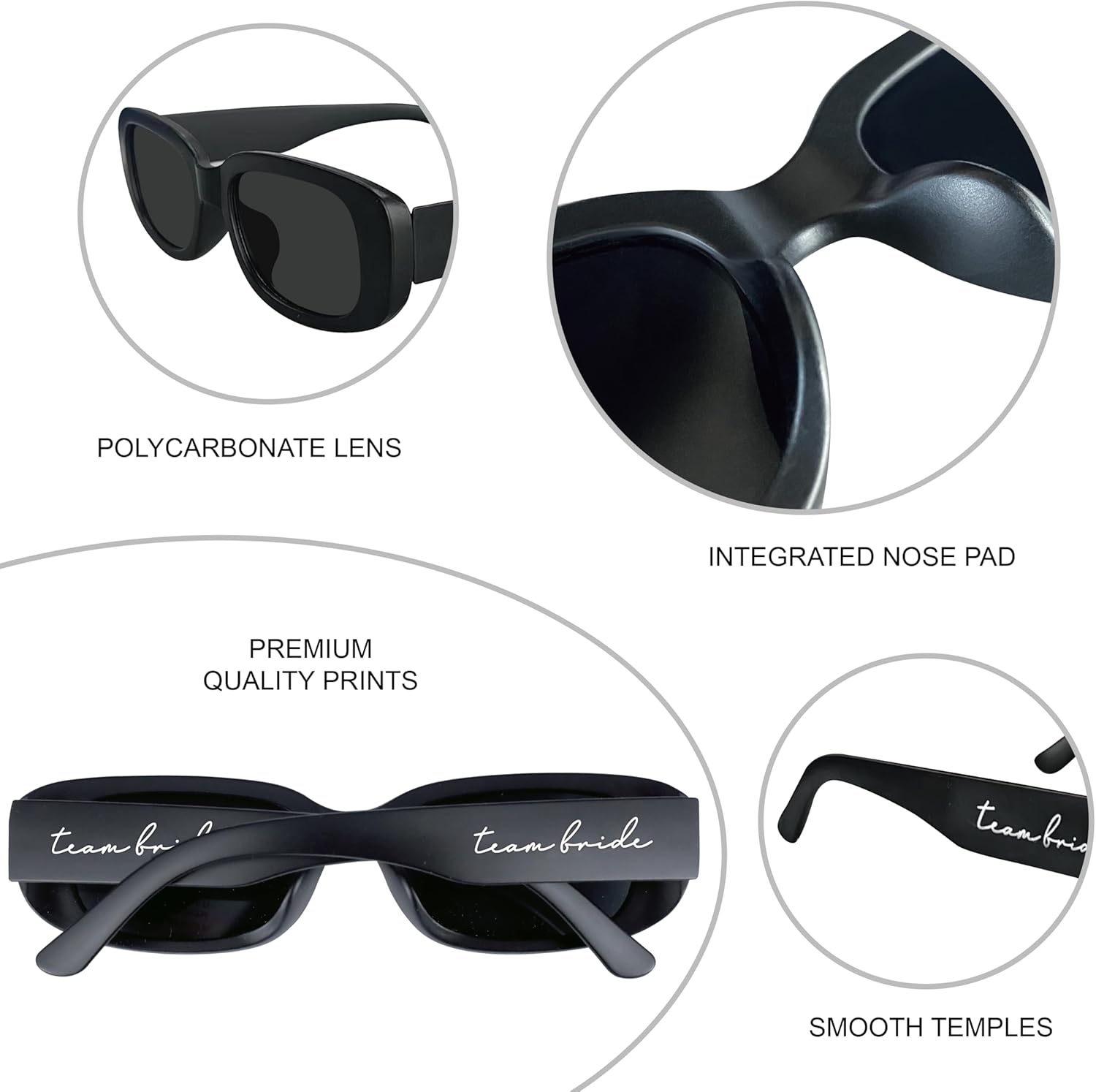 - 【Bridesmaid Sunglasses】 The rectangle frame makes the overall look of the bridesmaid sunglasses more retro. This stylish design allows you look more charming and make it easy for you to match with various outfits at various occasions