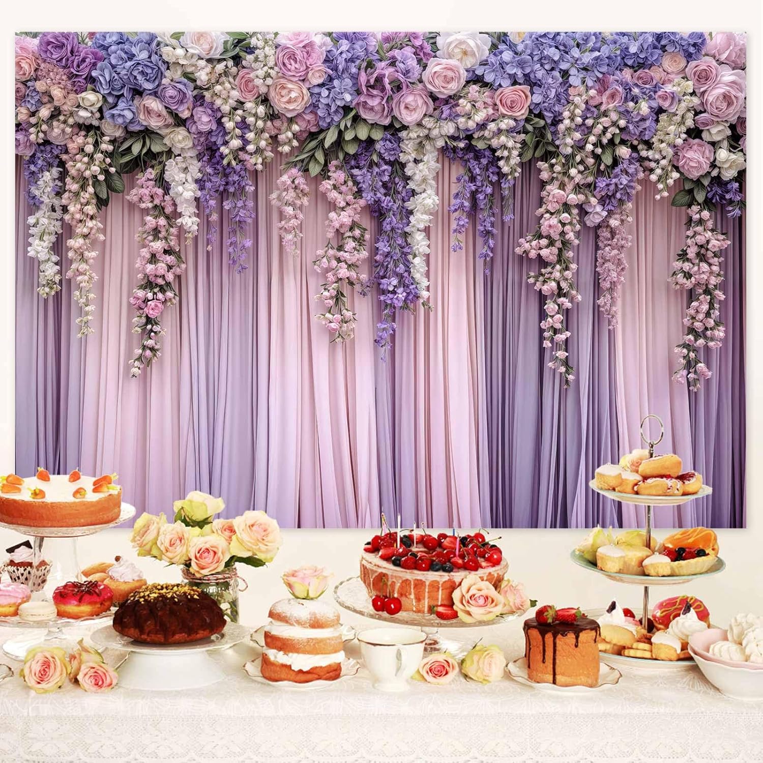 15x10ft Purple Flower Wedding Photography Backdrop Lavender Floral Wedding Bridal Photography Backdrop Anniversary Birthday Baby Shower Girl Party Banner Photo Booth Props Background Wall Decor