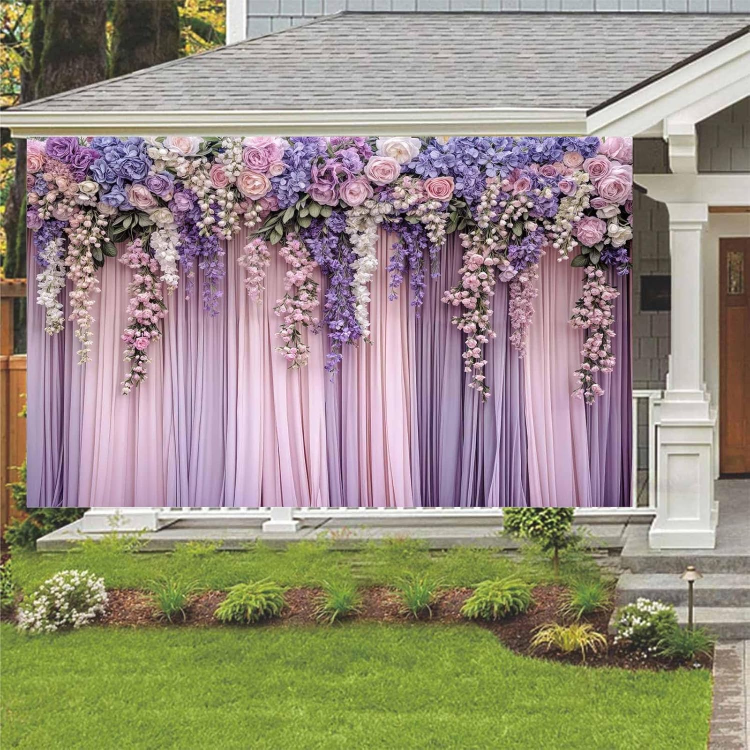 10x8ft Purple Flower Wedding Photography Backdrop Lavender Floral Wedding Bridal Photography Backdrop Anniversary Birthday Baby Shower Girl Party Banner Photo Booth Props Background Wall Decor