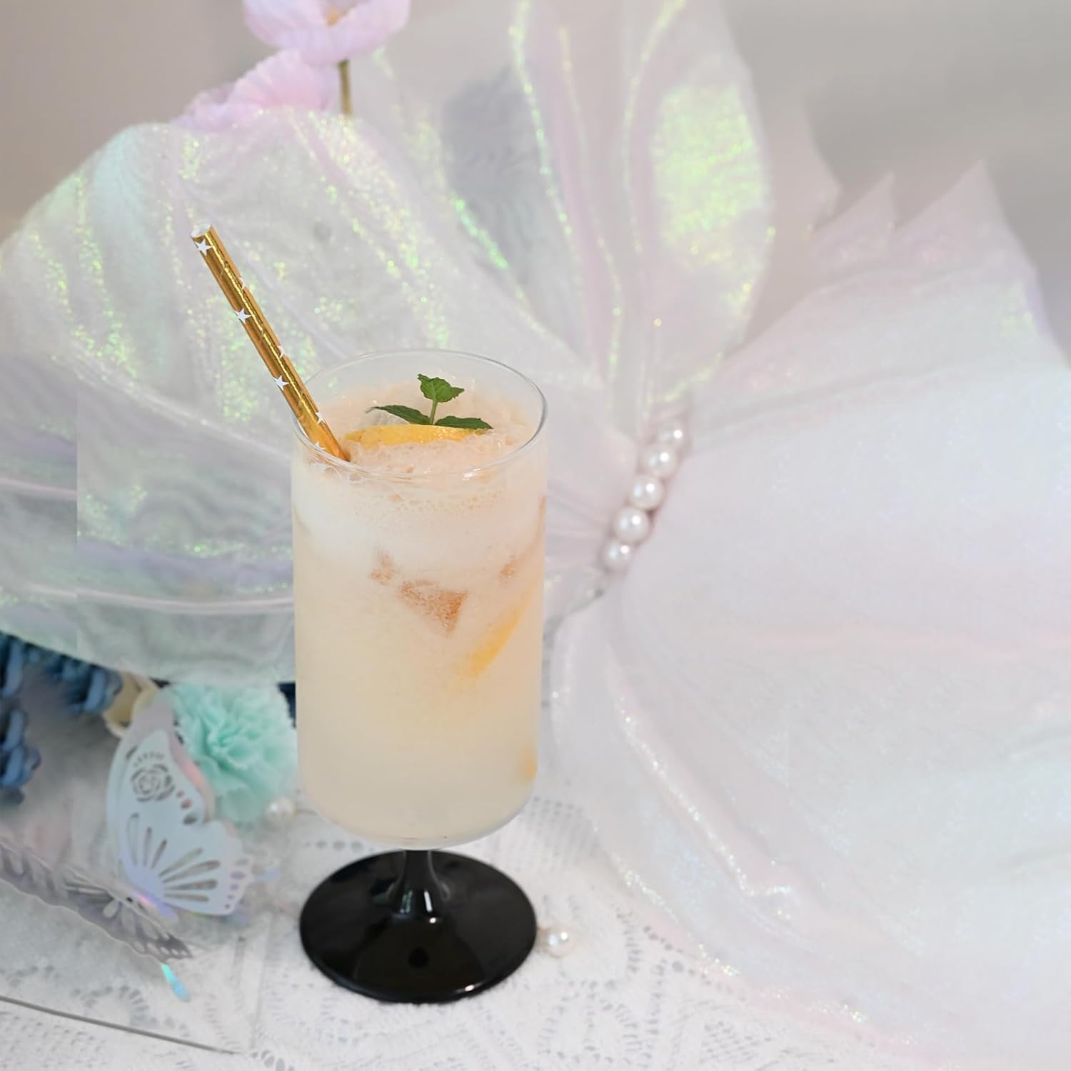 - Color : White Stars Gold Straws