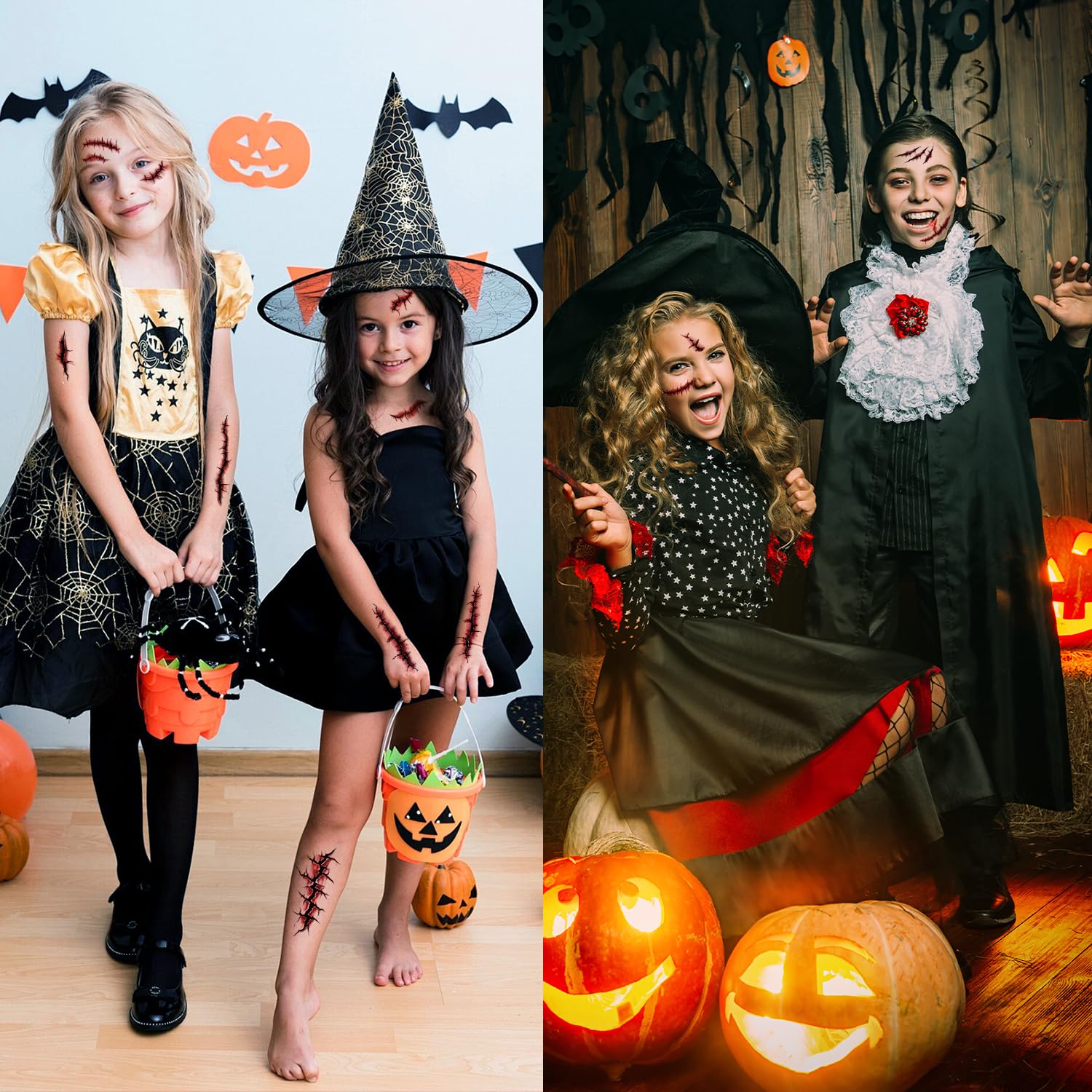 - Widely Application: These temporary tattoos for kids are great for Halloween cosplay costumes, Halloween face makeup, Zombie costume for Halloween parties, Halloween party favors, goodie bag favors, birthday party supplies and decorations, Halloween gifts, etc