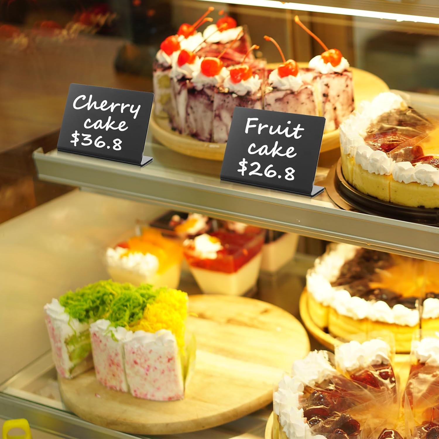 12 Pack Acrylic Mini Chalkboard Signs for Food, Black Mini Tabletop Chalkboard Signs, Small Buffet Chalkboards Signs for Weddings, Birthday Parties, Message Board Signs, Buffet, Bakery and Retail