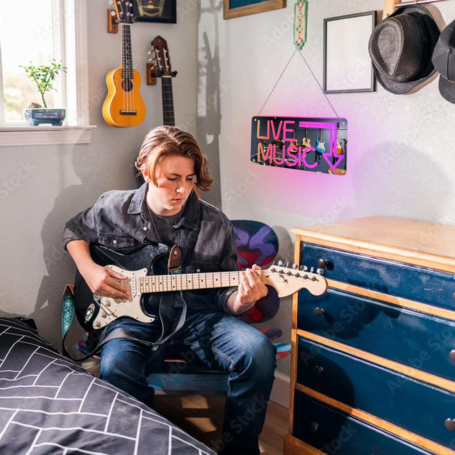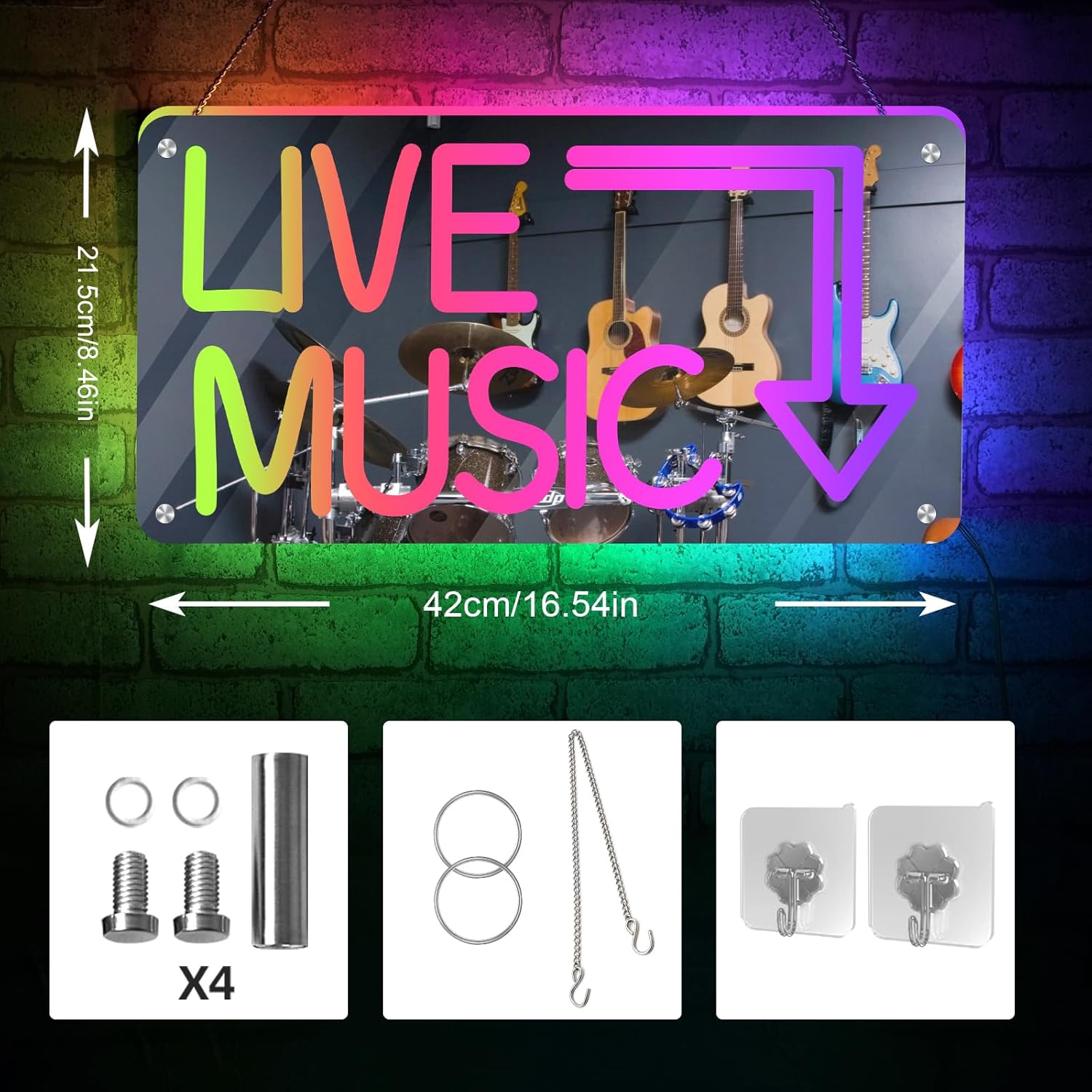 Live Music Neon Sign, Mirror LED Light Wall Décor with App-Controlled DIY Color, for Bars, Studios, Home