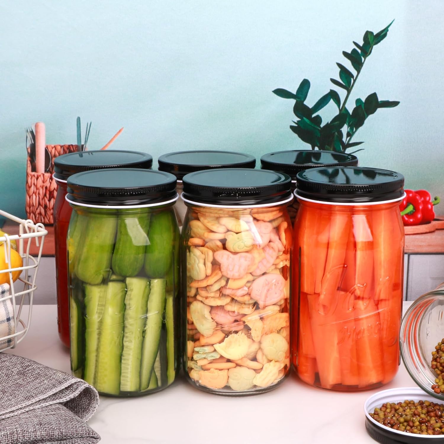 - Premium Food-Grade Glass - The mason jars 32 oz with lids are made of BPA free, toxic-free, lead free glass to ensure food grade safe and the high visibility allowing you to see whatโs inside jars with black lids.The jars are safe for refrigerator, dishwasher and microwave but the lids must be removed first. For freezing contents safely, do not exceed a 24-ounce fill level.